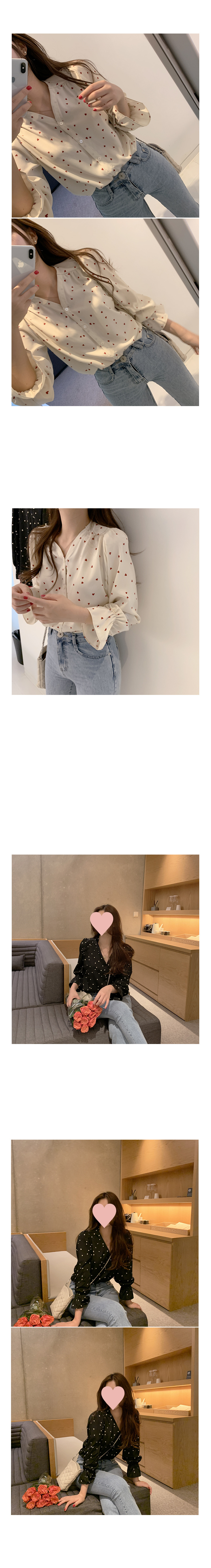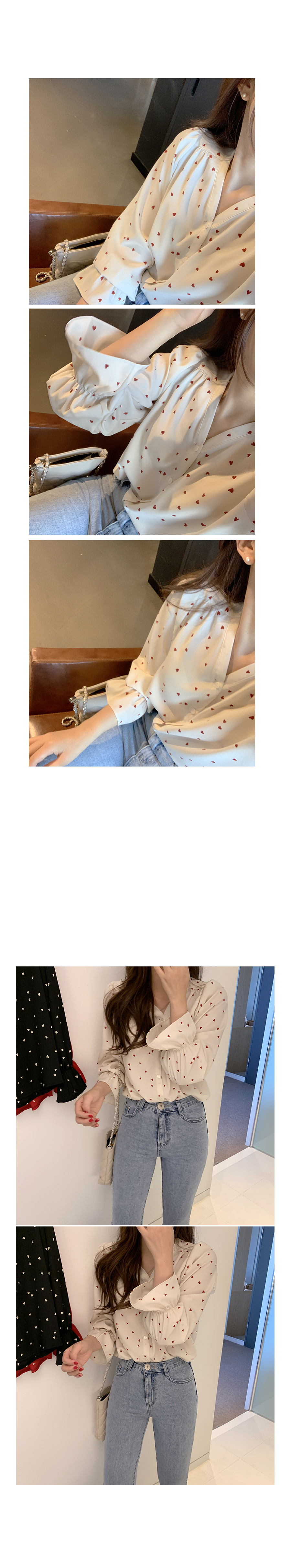 2023 봄 여름 새로운 여성 의류 한국 스타일 신선한 사랑 인쇄 V-넥 쉬폰 셔츠 여성 학생 모든 매치 탑스토어 가기