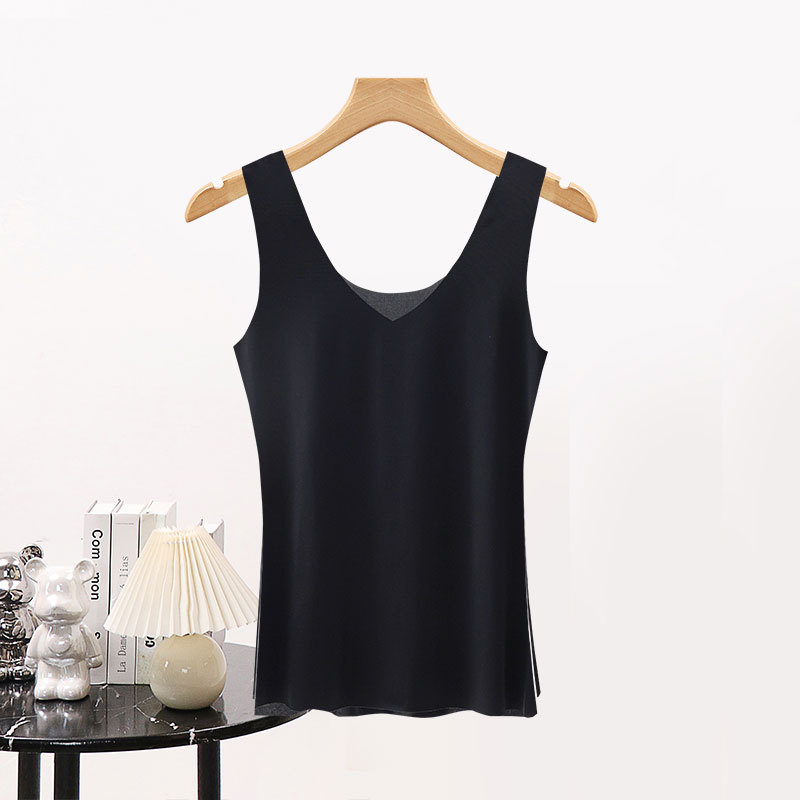 여름 아이스 실크 원활한 조끼 여성의 울트라 얇은 모든 매치 탑 플러스 사이즈 통통녀 느슨한 내부 착용 민소매 스트랩 베이스 셔츠스토어 가기