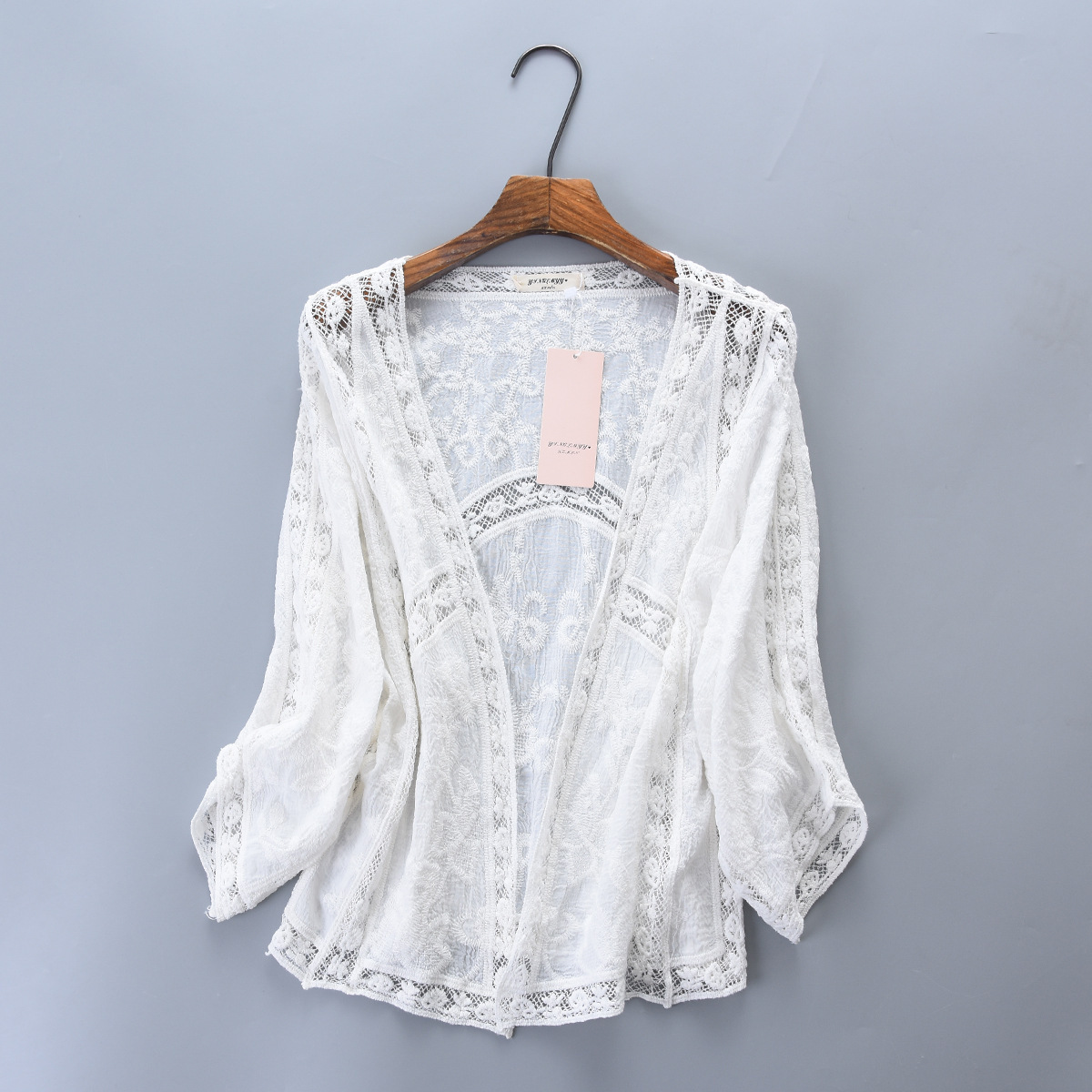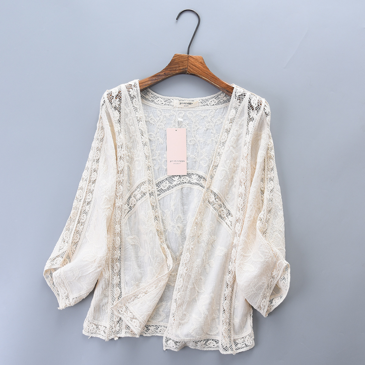 순면 자수 가디건 여성용 레이스 얇은 코트 짧은 겉옷 착용 작은 숄 여름 긴팔 자외선 차단제 의류스토어 가기