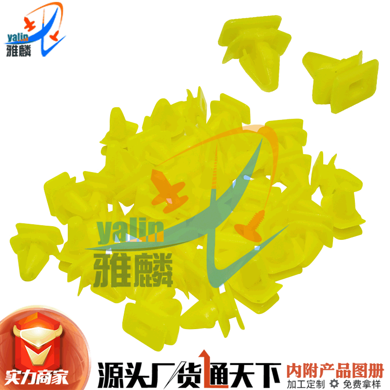 汽车位置用卡扣;汽车顶棚卡扣丰皮铆钉;内饰板卡扣;门饰板卡扣;护板卡扣;底边梁卡扣;座椅卡扣固定卡子;灯扣快丝座子贡螺丝;汽车锁扣;流水条卡扣;后备箱卡扣;叶子板内衬卡扣;机盖隔热板卡扣;隔热棉卡子;密封条卡扣;轮门卡扣;支撑杆卡扣;玻璃托卡扣;玻璃扣;脚垫卡扣;子母扣;双合扣;压条卡扣;保险杠卡扣(前杠 后杠);中网卡扣;机盖扣;穿芯钉;穿心钉;窗帘扣;地板扣;地毯扣;水管卡;油管卡;线卡;德式卡箍;美食喉箍;强力水管卡子;喷水嘴卡扣;压条钉;门提;门保险;开尾销钉;膨胀扣;膨胀螺丝;螺丝扣;膨胀螺丝扣;抽芯钉;胶墩;衬套;金属叶子板螺丝;铁片;螺钉;螺母;铁卡子