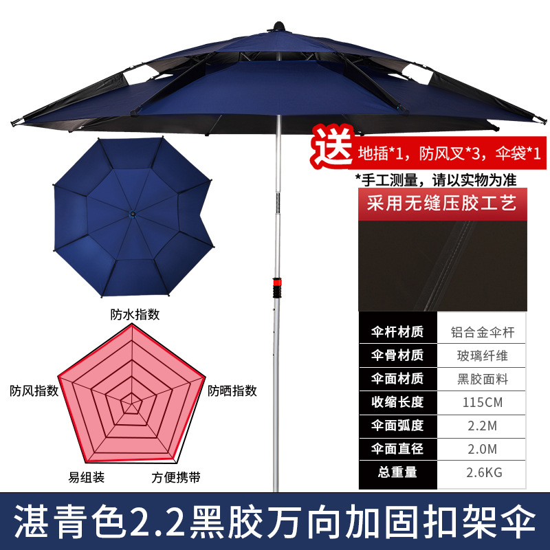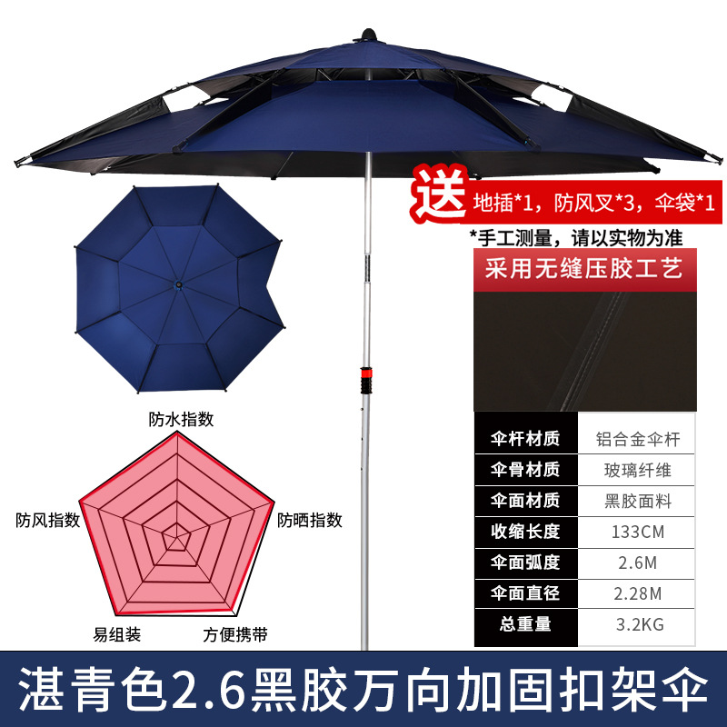 낚시 우산 범용 방수 두꺼운 검은 접착제 낚시 우산 접는 폭풍우 2.6 m 큰 낚시 우산 자외선 차단제 검은 우산