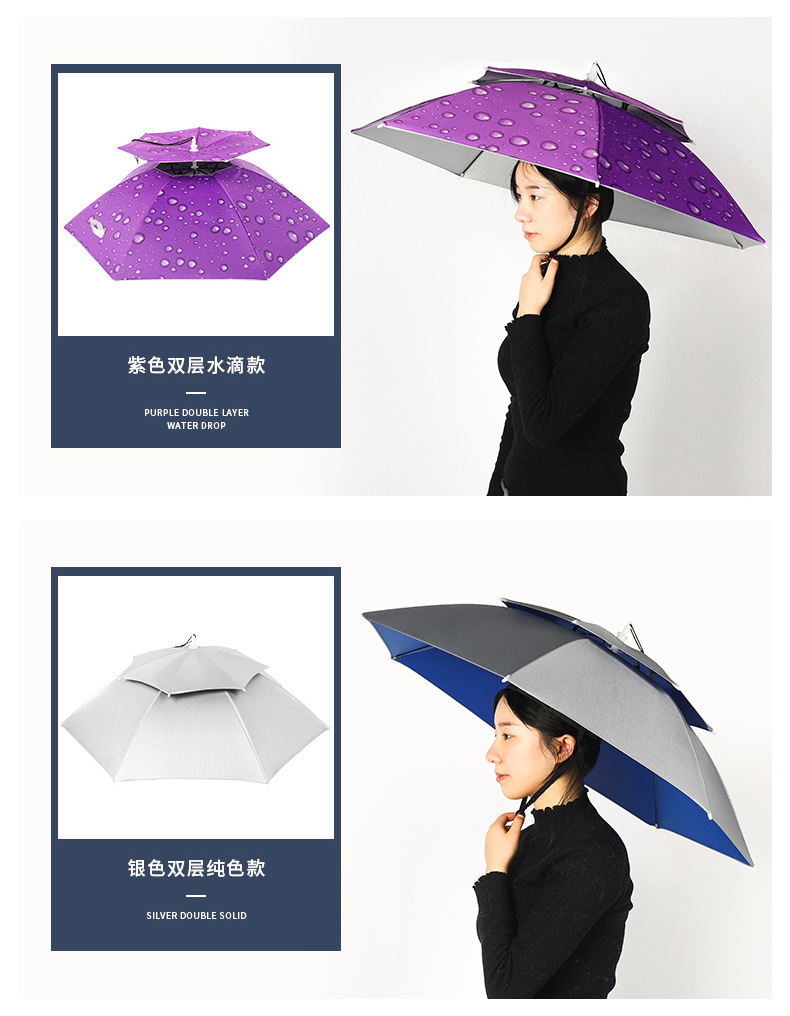 바람과 비를 막아주는 낚시용 우산 모자, 머리에 착용하는 접이식 우산, 야외 낚시용 자외선 차단 우산, 이중 강화스토어 가기