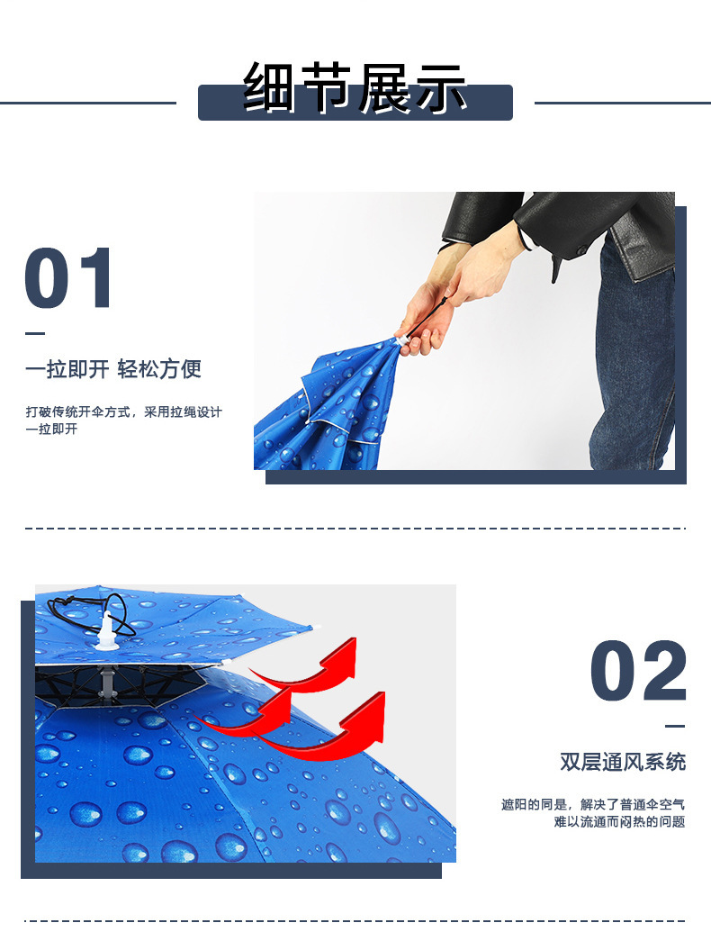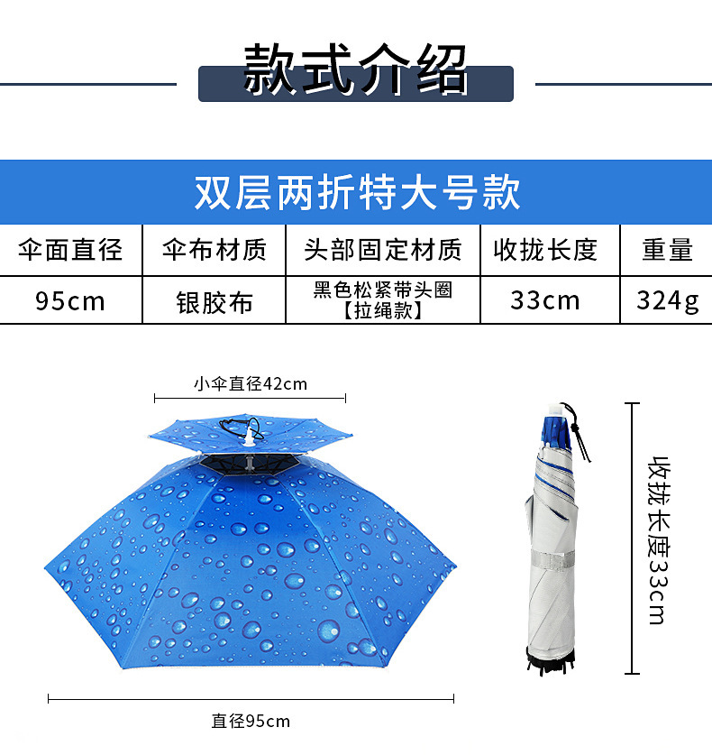 • 우산 모자 초대형 95cm-더블 레이어-블루 드롭