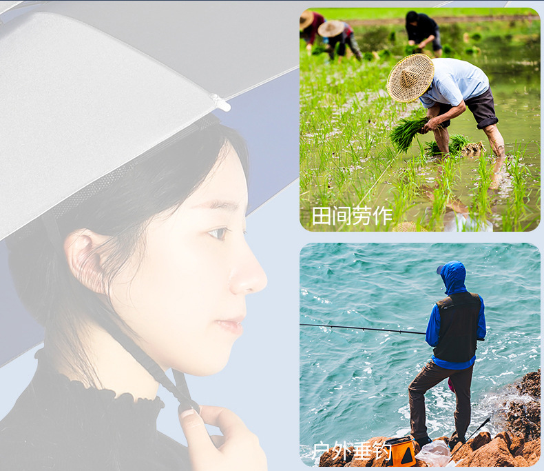 바람과 비를 막아주는 낚시용 우산 모자, 머리에 착용하는 접이식 우산, 야외 낚시용 자외선 차단 우산, 이중 강화