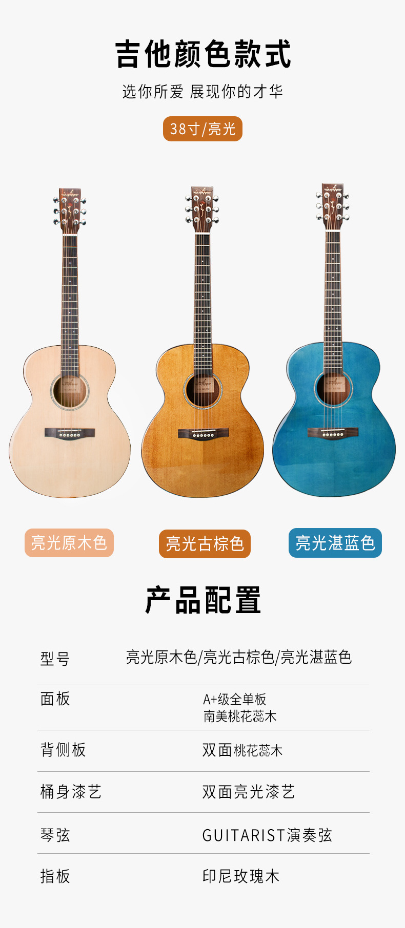 포크 기타 베니어 38 인치 초보자 남성과 여성 38 인치 성능 수준 초보자 독학 손가락 어쿠스틱 기타 연주스토어 가기