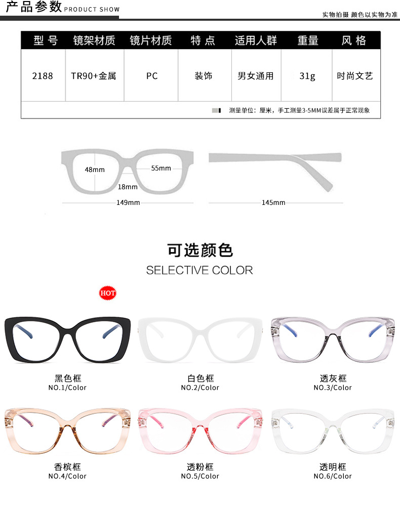리틀 레드 북 온라인 연예인 작은 향수 유럽과 미국의 새로운 여성용 평면 안경 근시 안티 블루 안경에 우아한 다이아몬드
