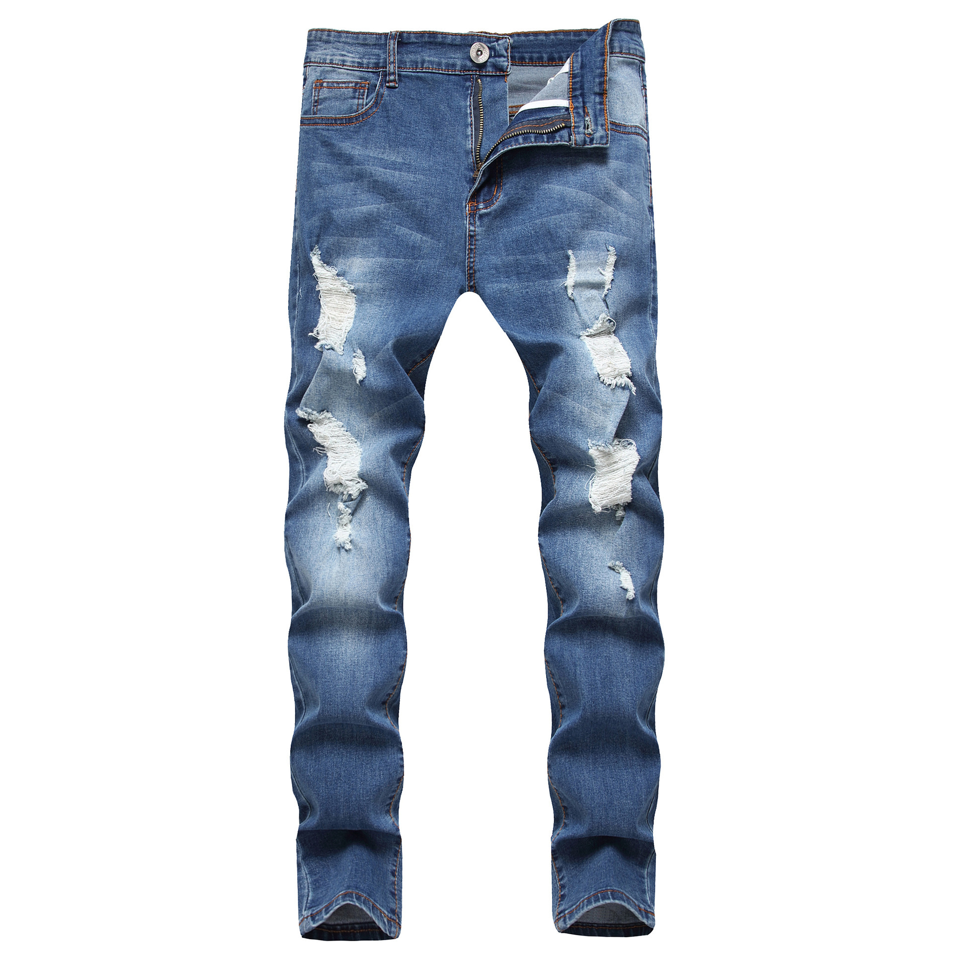 크로스 보더 아마존 남성 캐주얼 찢어진 청바지 스키니 팬츠스토어 가기