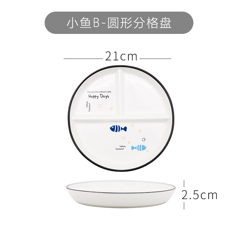 식기 세라믹 접시 가정용 귀여운 어린이 디스크 학생 디너 플레이트 유전체 접시 전자 레인지 용 아기의 3 칸 디너 플레이트스토어 가기