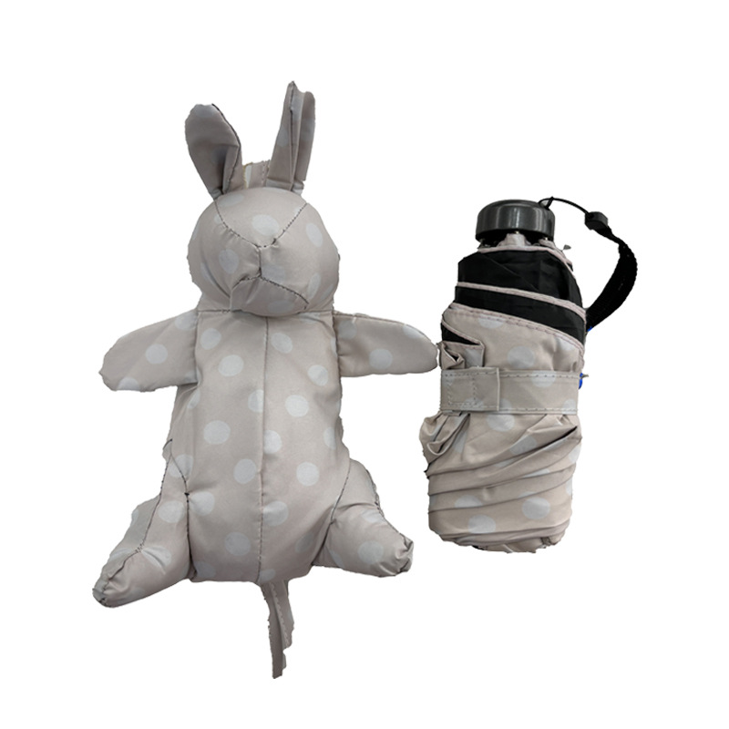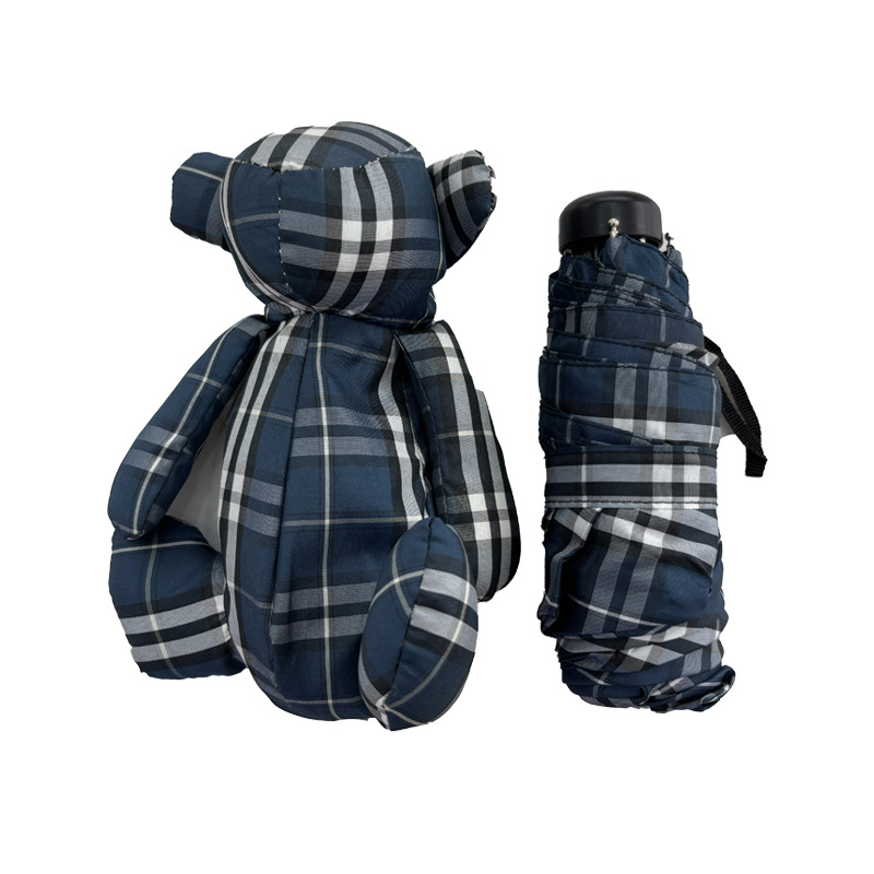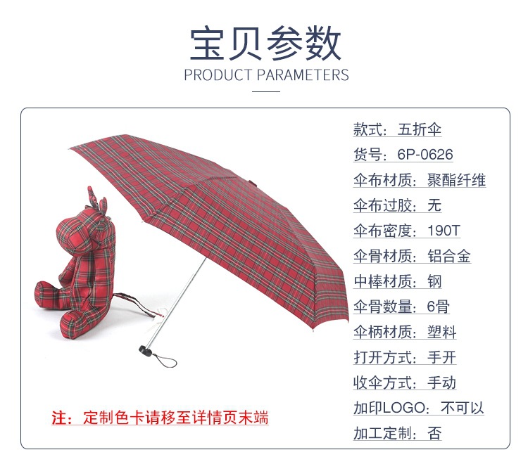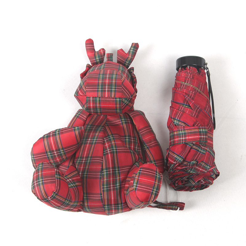 빨간 격자 무늬 50% 접힌 인형 우산 만화 귀여운 인형 가방 접히는 우산 캐주얼 간단한 시원한 우산