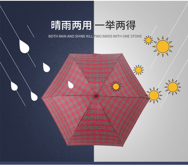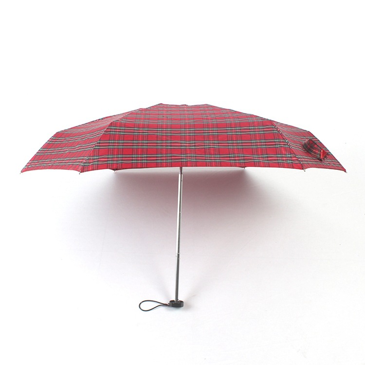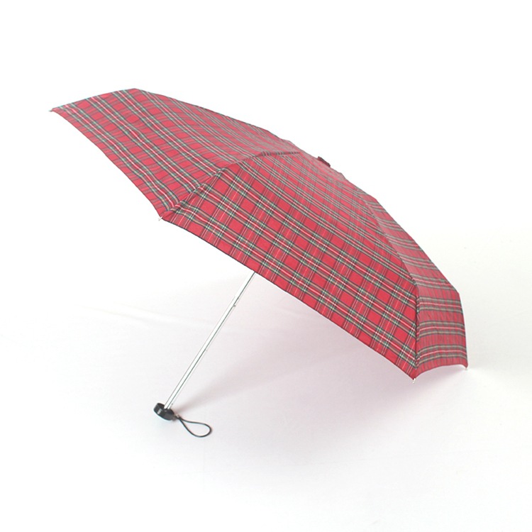 빨간 격자 무늬 50% 접힌 인형 우산 만화 귀여운 인형 가방 접히는 우산 캐주얼 간단한 시원한 우산스토어 가기