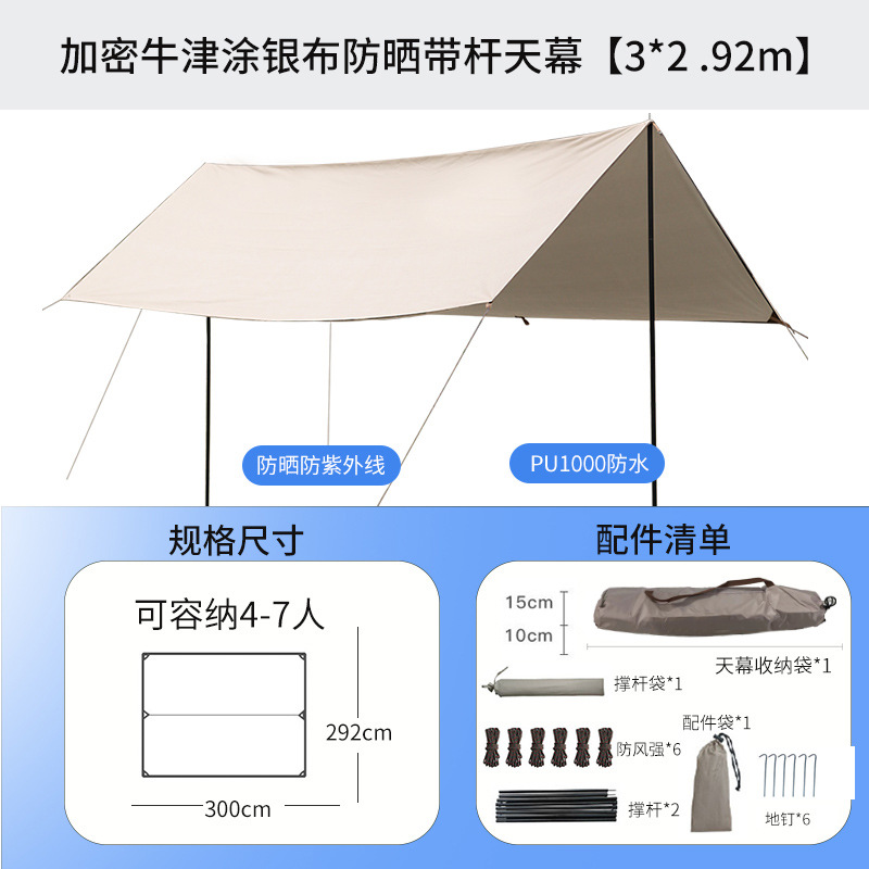 옥스퍼드 천 실버 코팅 선 스크린 텐트 방수 방풍 캠핑 양산 초경량 다이아몬드를 만들기 위해 야외 캐노피를 두껍게스토어 가기