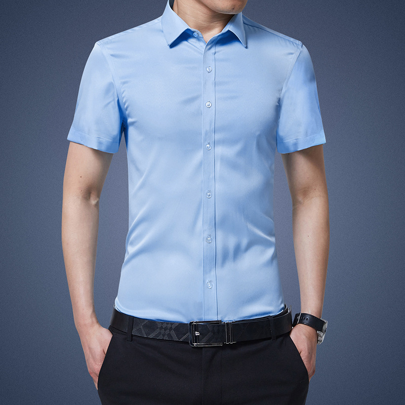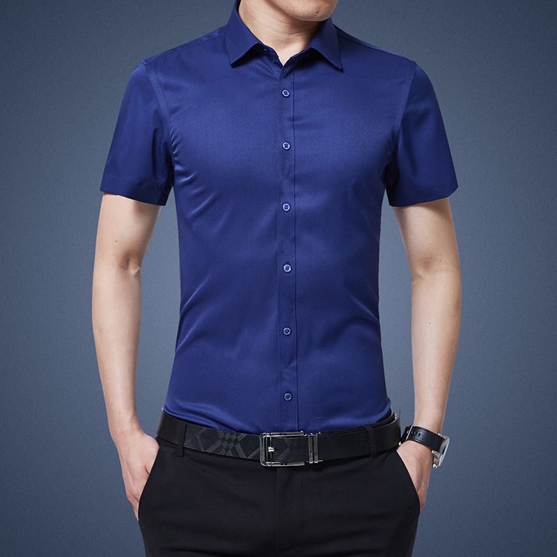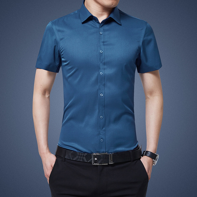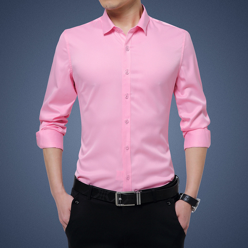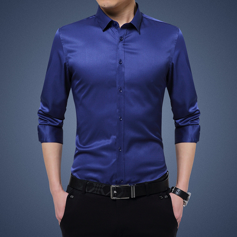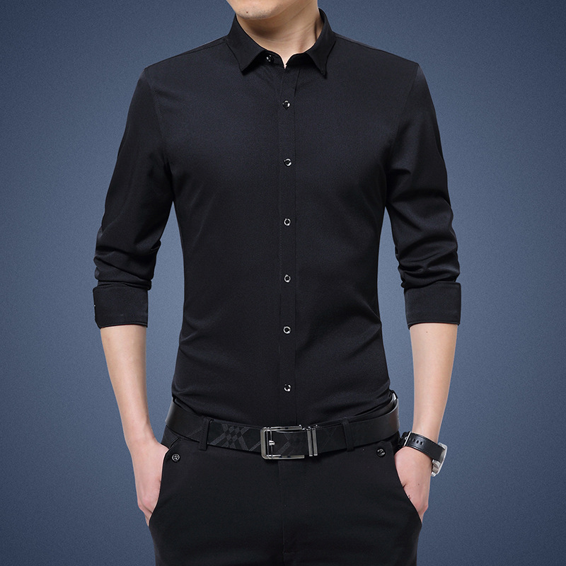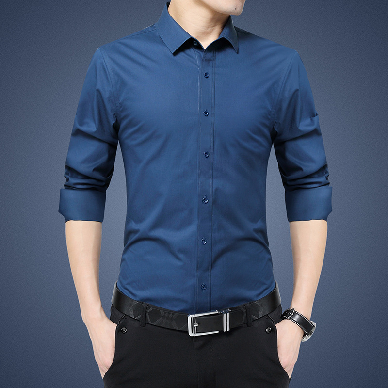 디추앙저 6615 남성 긴팔 셔츠 슬림핏 한국 스타일 구김 방지 다림질 필요 없는 젊은 남성용 신축성 셔츠 2020스토어 가기