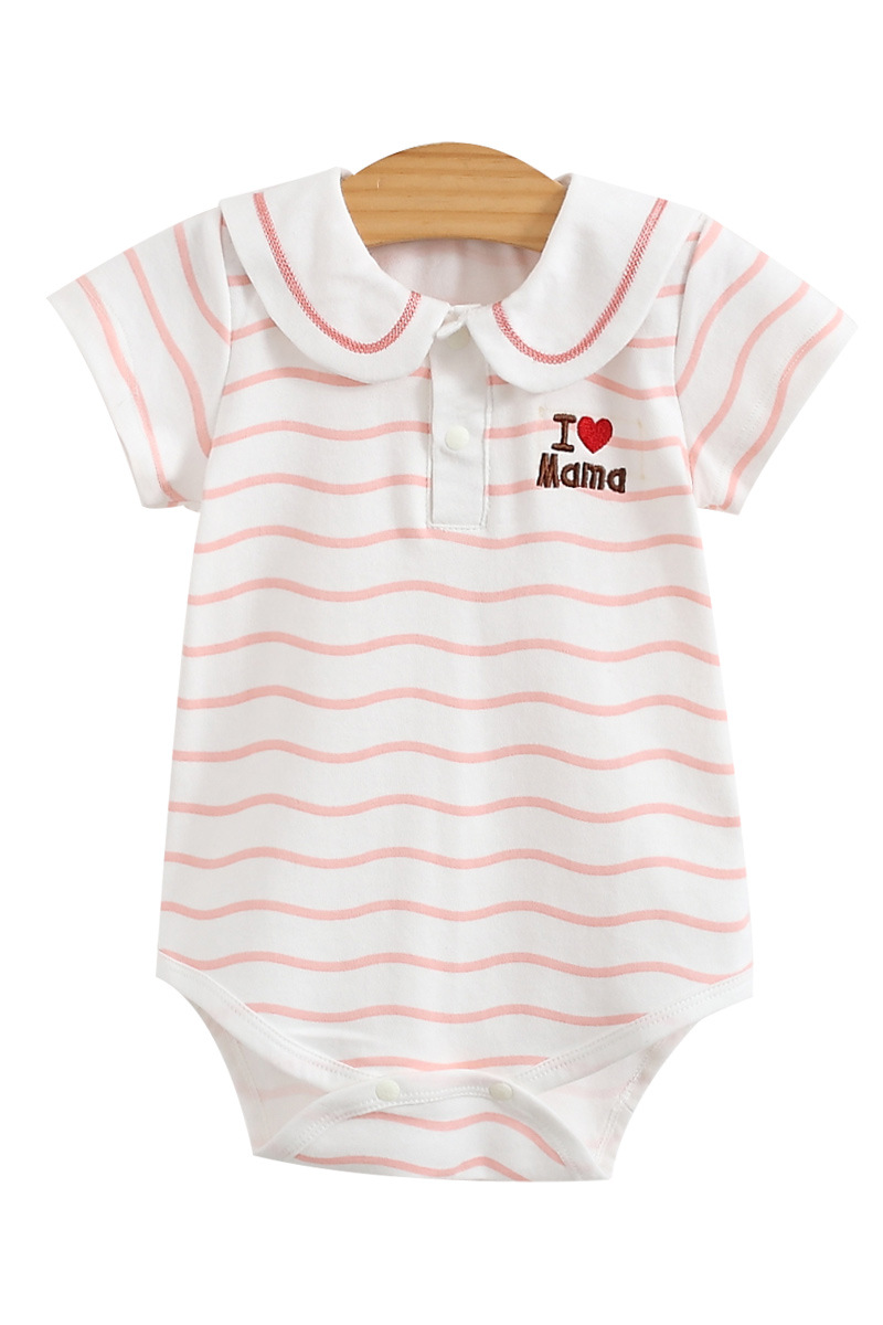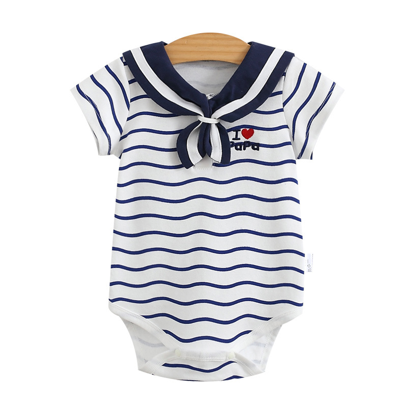 나는 엄마와 아빠를 사랑합니다 여름 새로운 네이비 칼라 웨이브 아기 랩 방귀 옷 소년과 소녀를위한 아기 반팔 모자스토어 가기