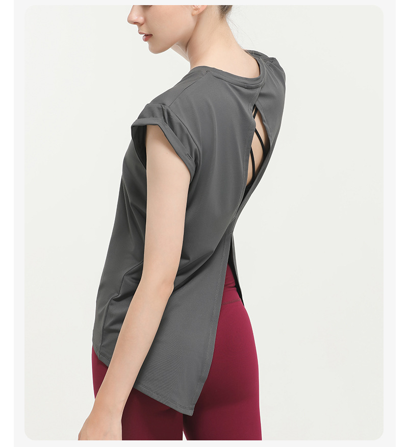 국경 피트니스 반팔 티셔츠 빠른 건조 스포츠 커버 업 여름 요가 의류 요가 탑 러닝 피트니스 의류 여성