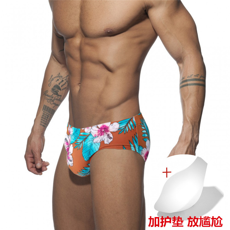 남자 수영 트렁크 삼각형 인쇄 수영 트렁크 유럽과 미국 낮은 허리 섹시한 컵 수영 트렁크 온천 해변 수영 반바지
