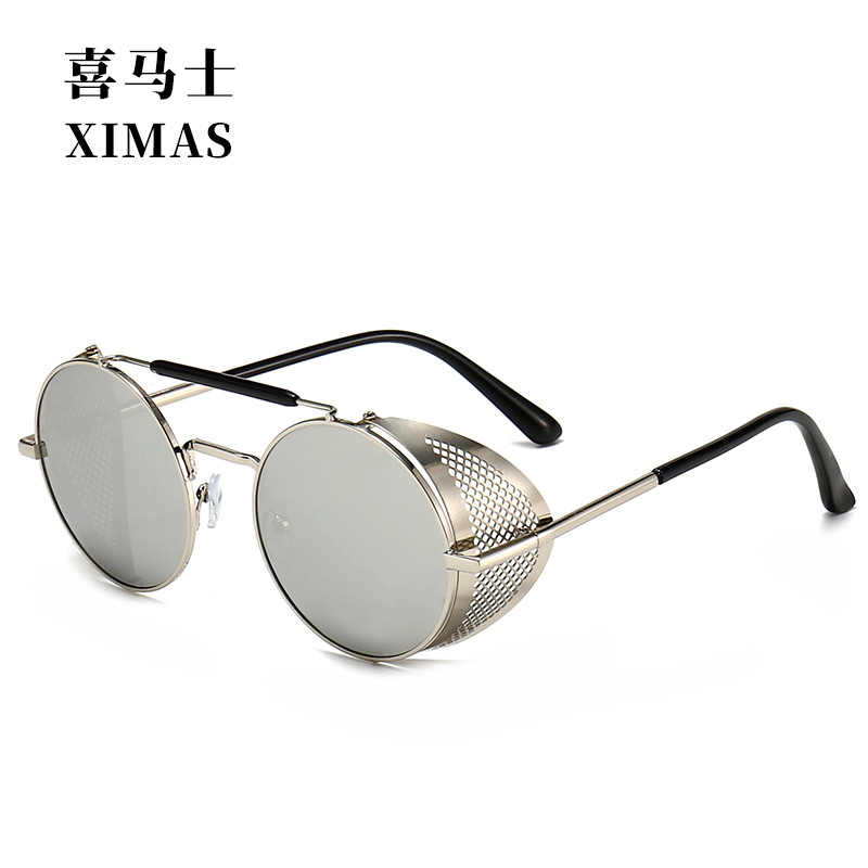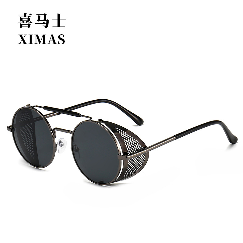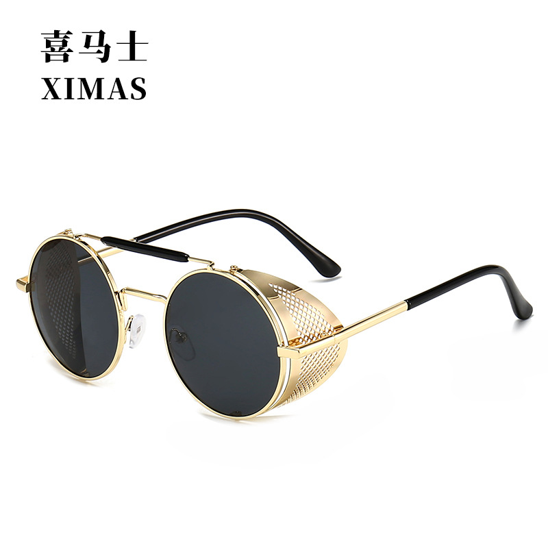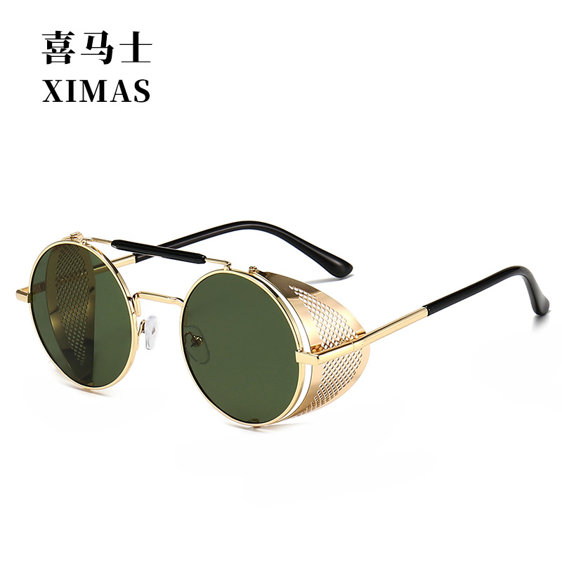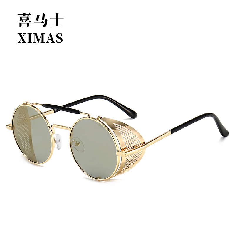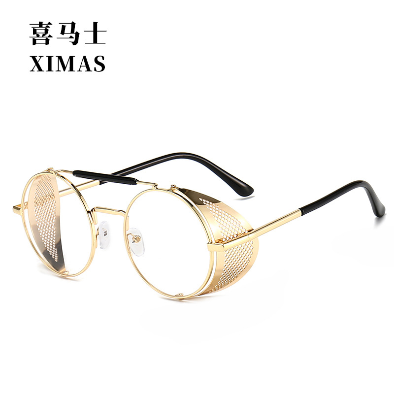 유럽과 미국 Steampunk 선글라스 사이드 윈드 실드 메쉬 선글라스 플립 라운드 메탈 선글라스 66247