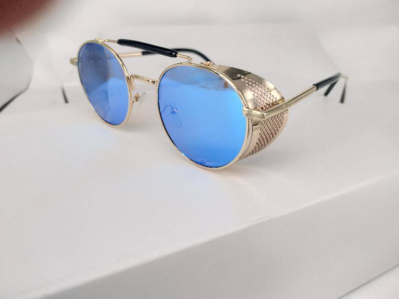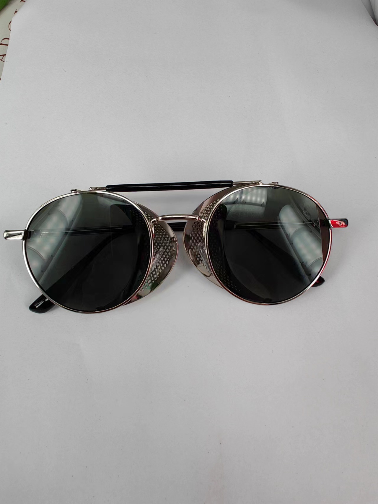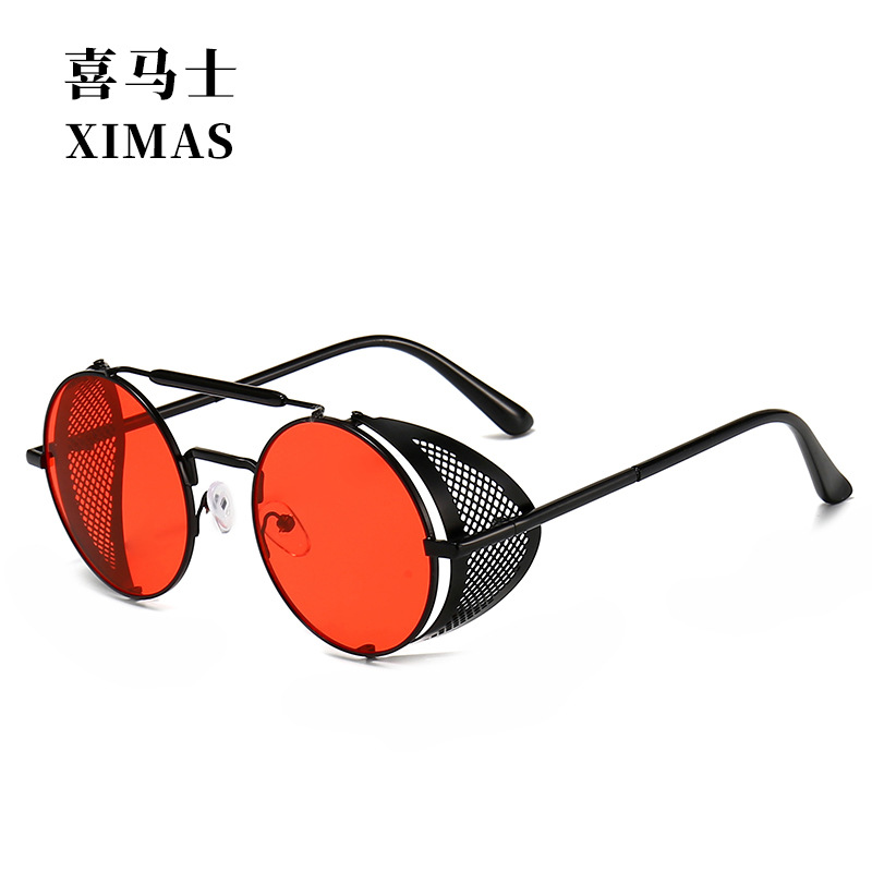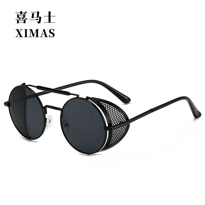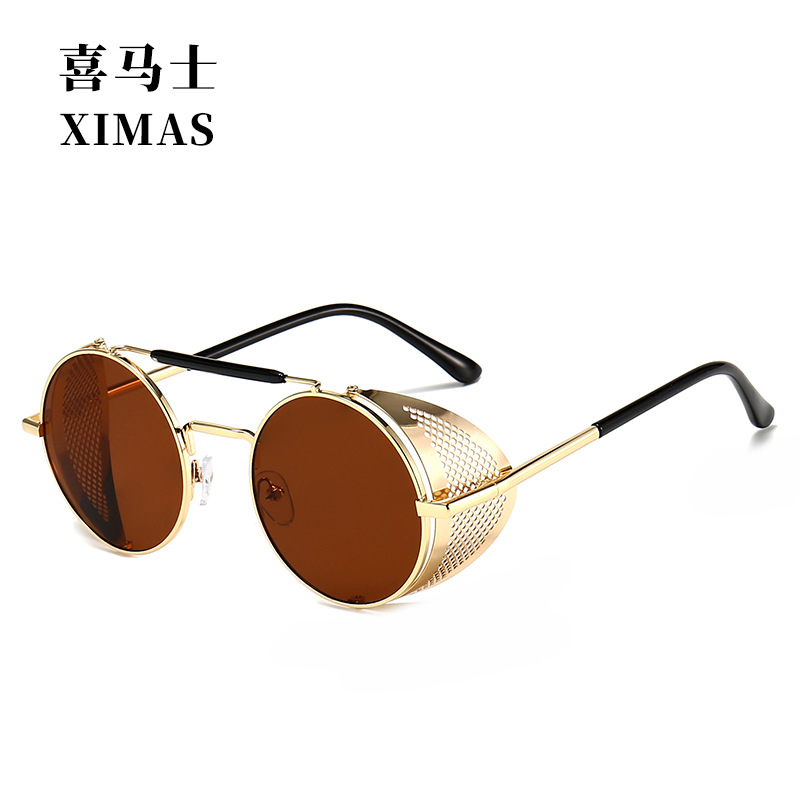 유럽과 미국 Steampunk 선글라스 사이드 윈드 실드 메쉬 선글라스 플립 라운드 메탈 선글라스 66247