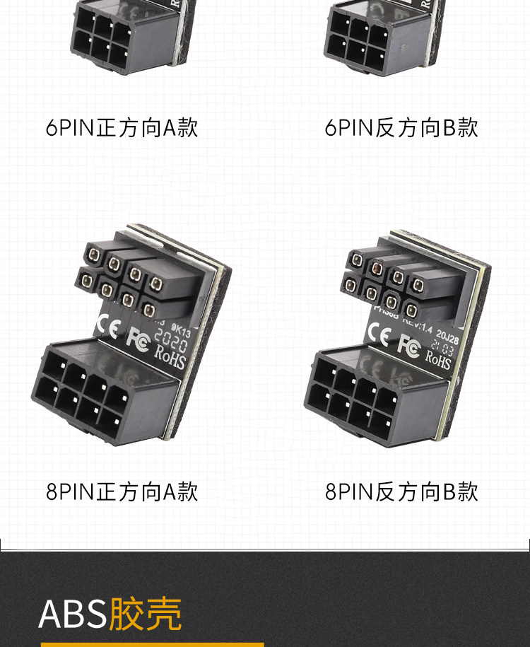 그래픽 카드 파워 스티어링 커넥터 6PIN 8PIN 전원 인터페이스 회전 180 도 다른 24PIN 회전