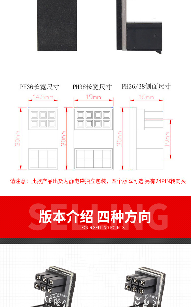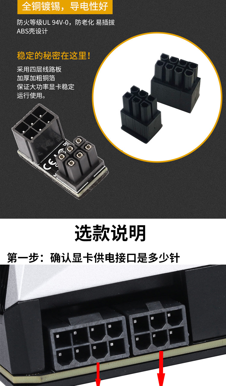 그래픽 카드 파워 스티어링 커넥터 6PIN 8PIN 전원 인터페이스 회전 180 도 다른 24PIN 회전스토어 가기