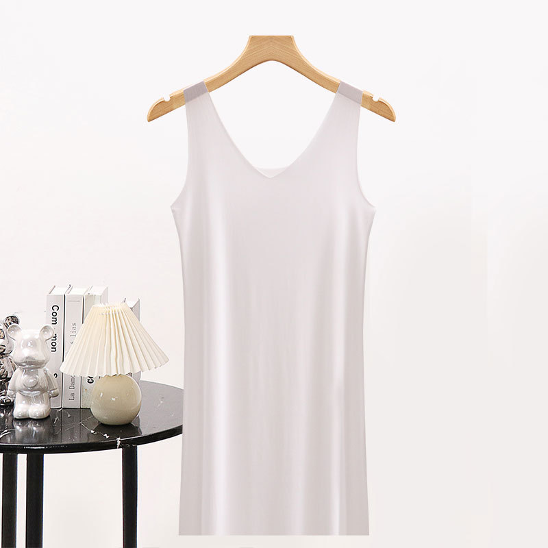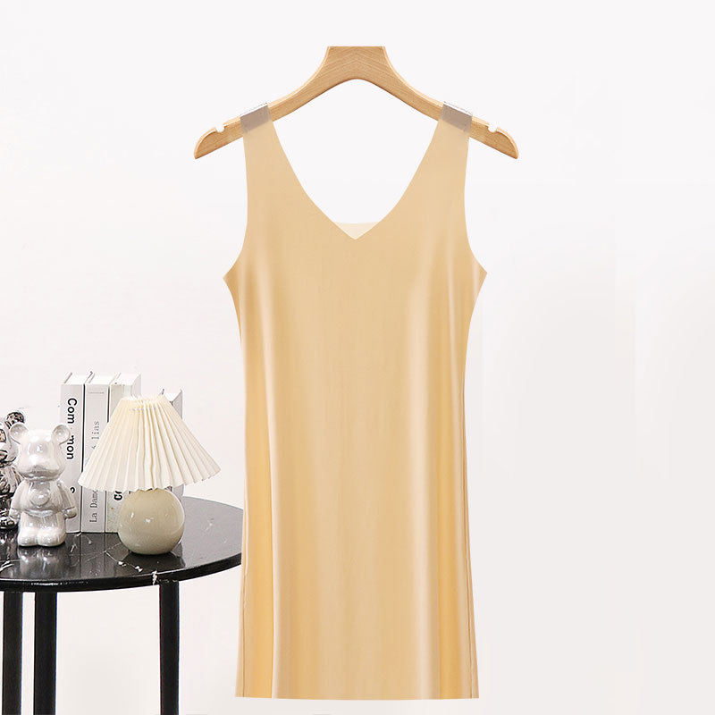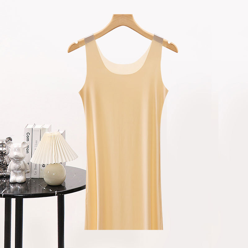 여름 아이스 실크 추적 꽃병 원피스 여성의 중간 길이 울트라 얇은 플러스 사이즈 통통녀 느슨한 슬링 잠옷 베이스 내부 페티코트