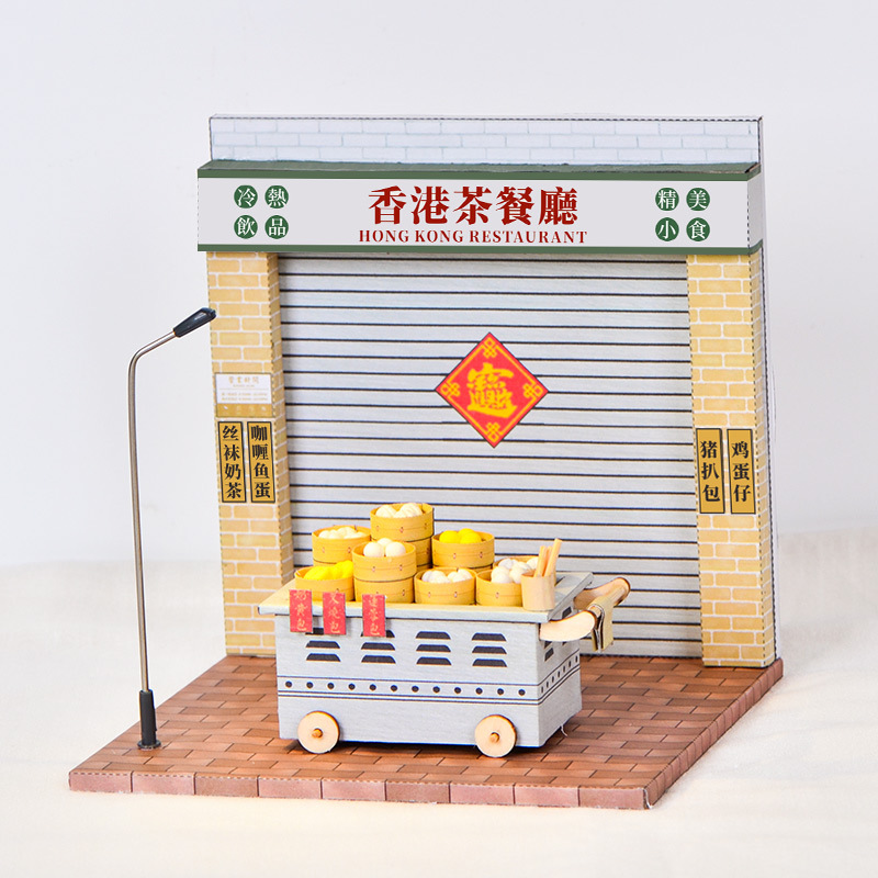 Guofeng diy 캐빈 핸드메이드 모델 홍콩식 바베큐 미니 카트 노점 블라인드 박스 핸드메이드 신스토어 가기