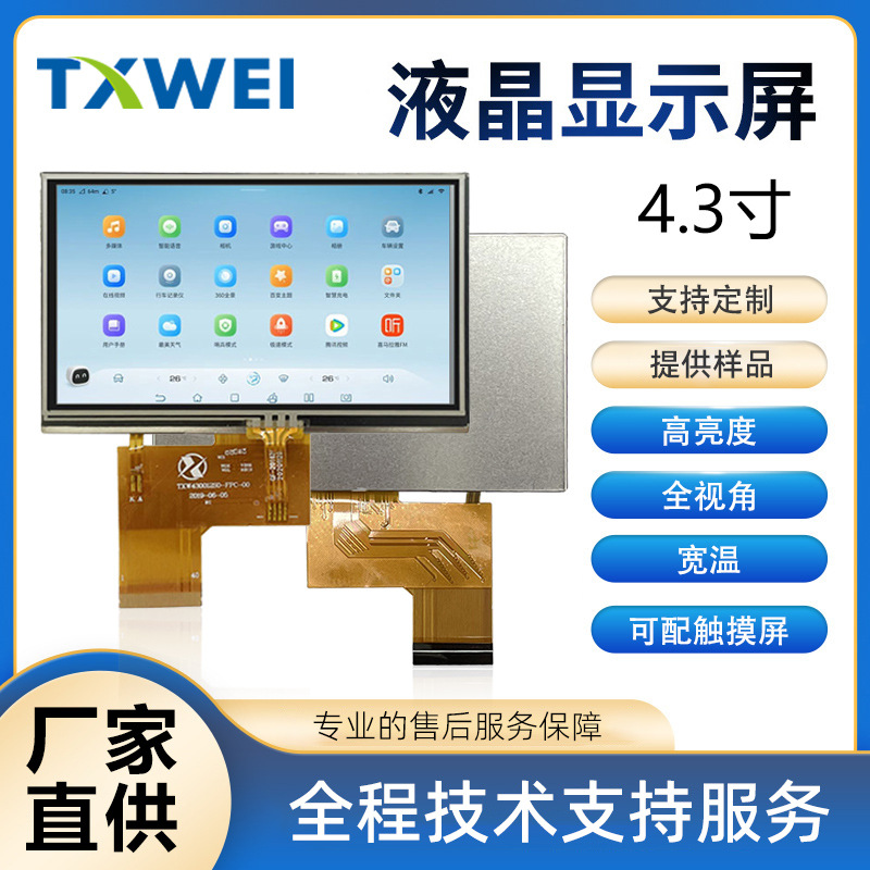4.3 인치 480 * 272IPS 넓은 온도 산업 차량 장착 의료 기기 지능형 가전 LCD 화면스토어 가기