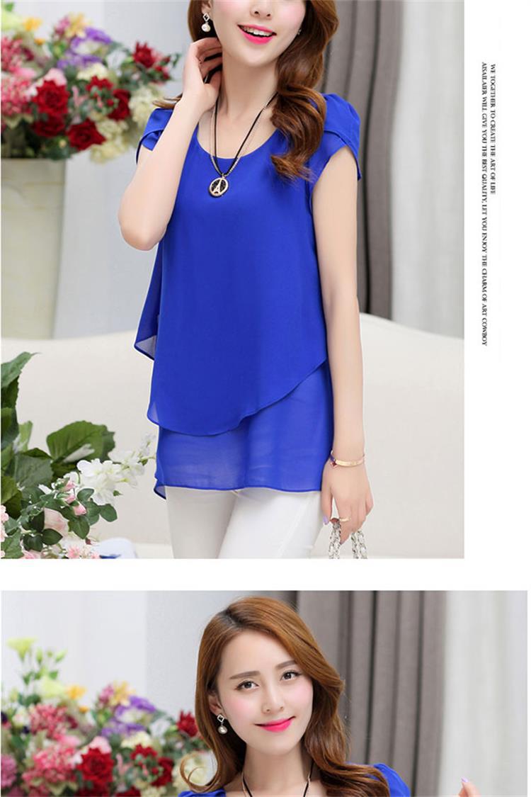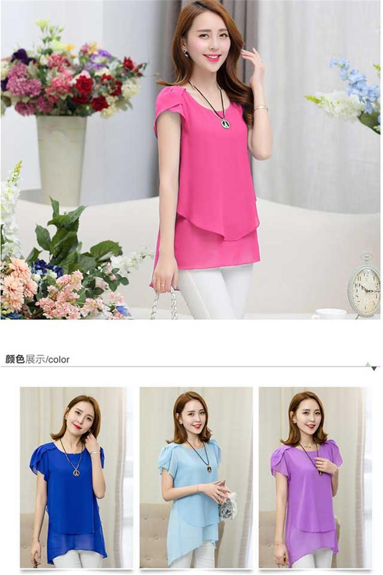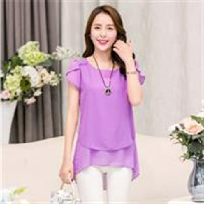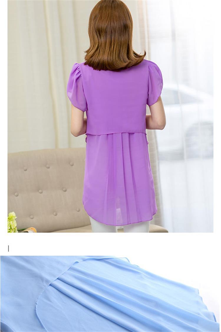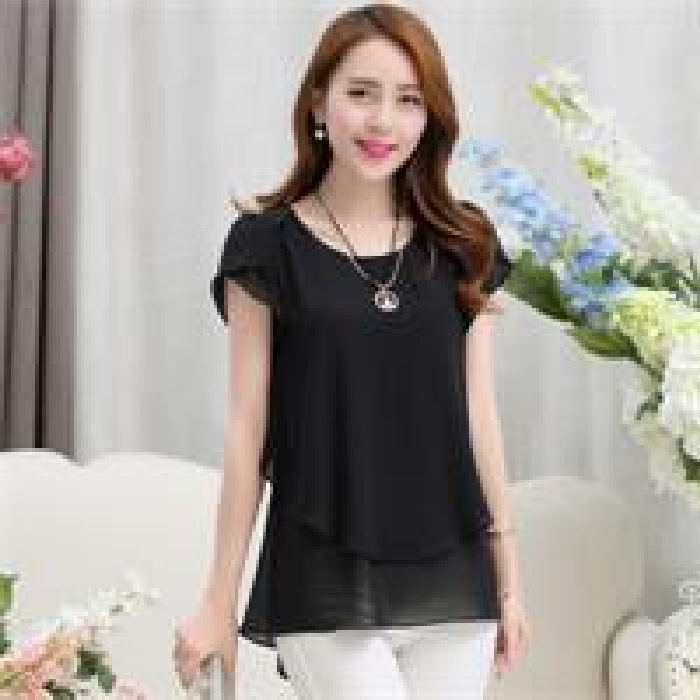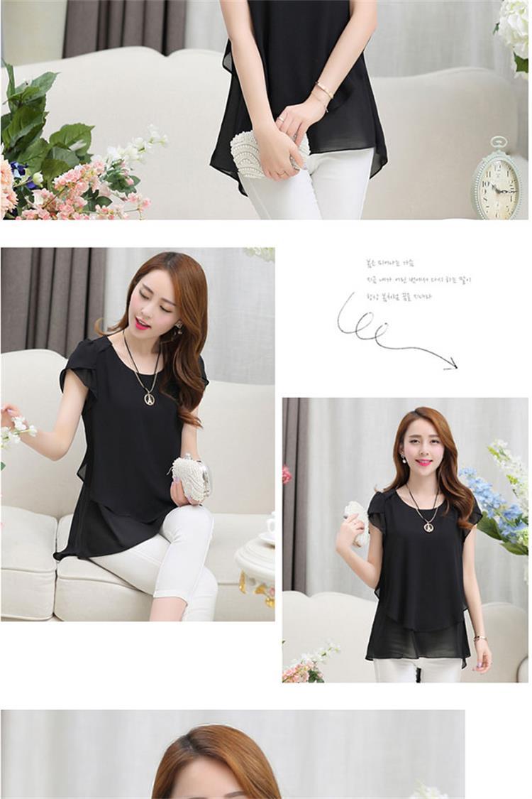 [여름 숨기기 고기 유물] 플러스 사이즈 여성의 통통녀 긴 느슨한 얇은 쉬폰 셔츠 반팔 탑스토어 가기