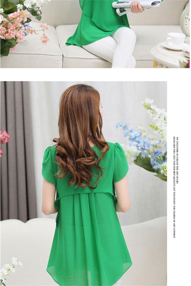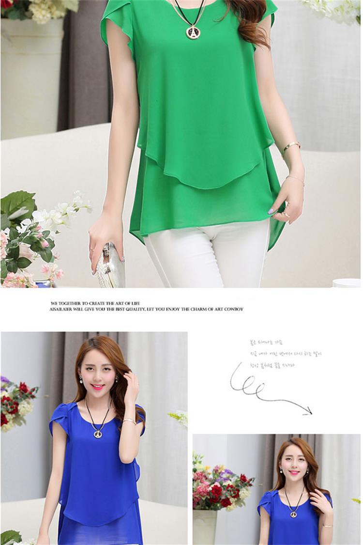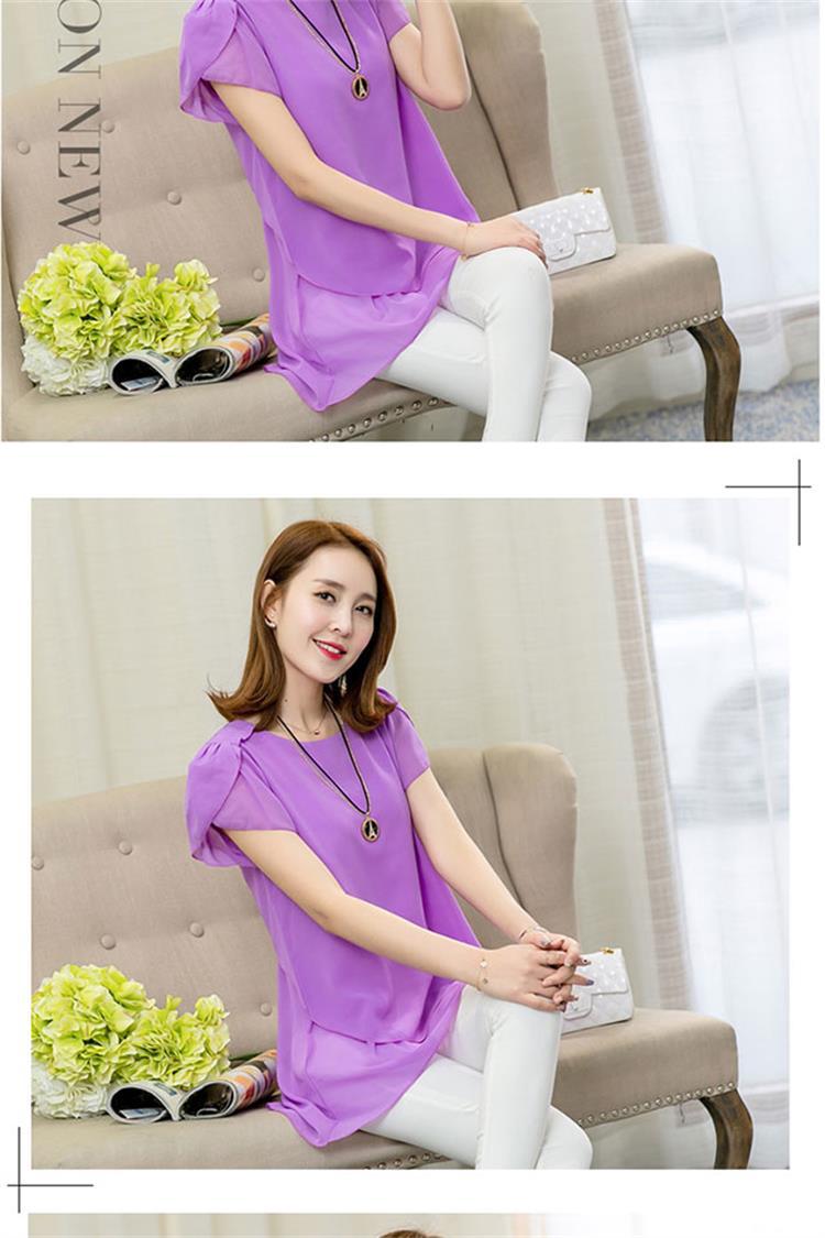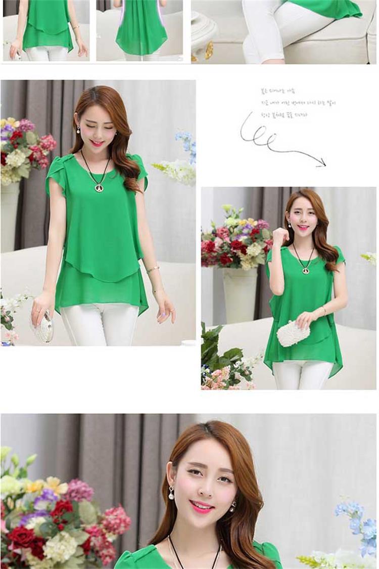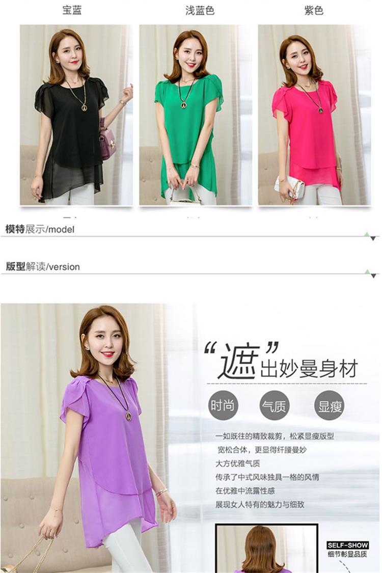 [여름 숨기기 고기 유물] 플러스 사이즈 여성의 통통녀 긴 느슨한 얇은 쉬폰 셔츠 반팔 탑