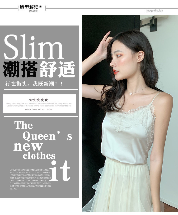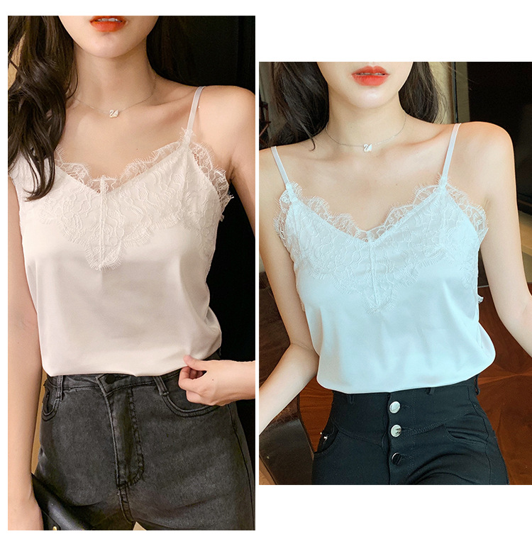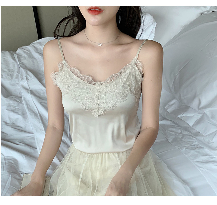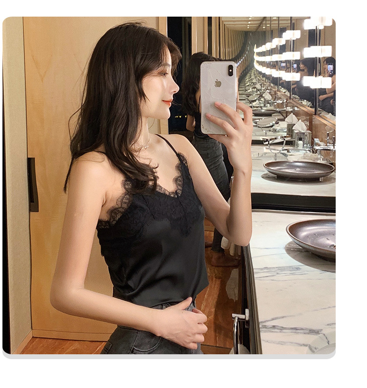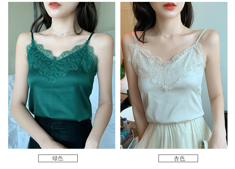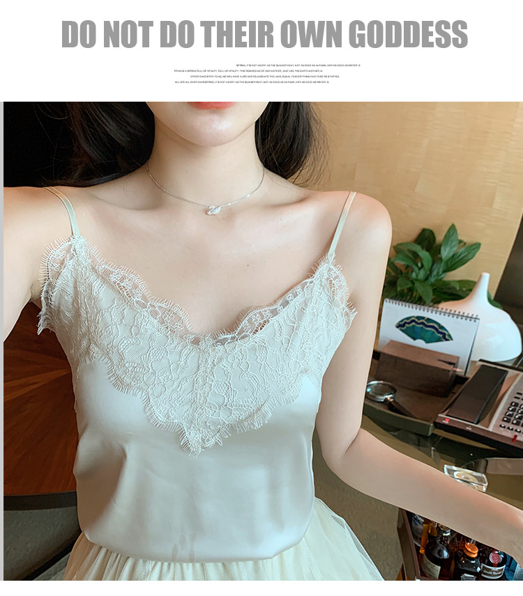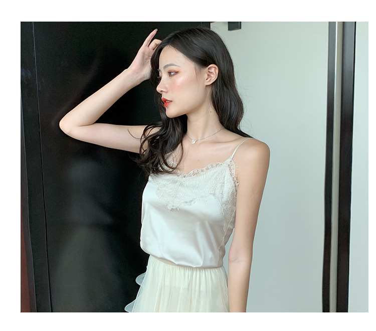 속눈썹 캐미솔 여성의 2020 여름 세트 내부 착용 아름다운 백 베이스 외부 착용 실크 새틴 탑 얇은스토어 가기