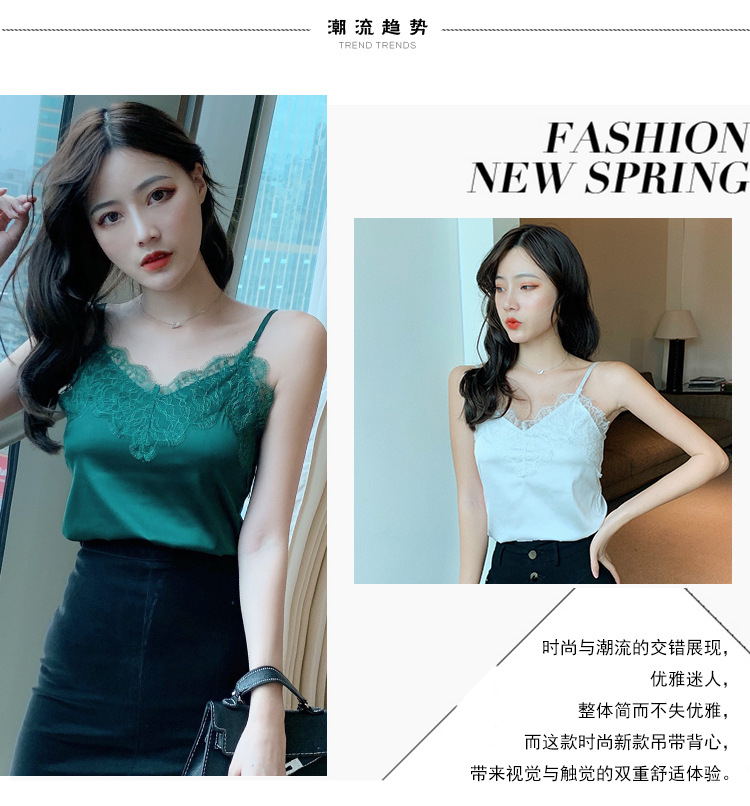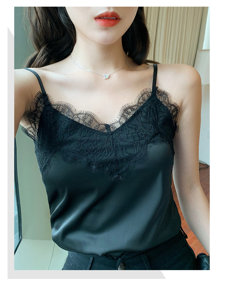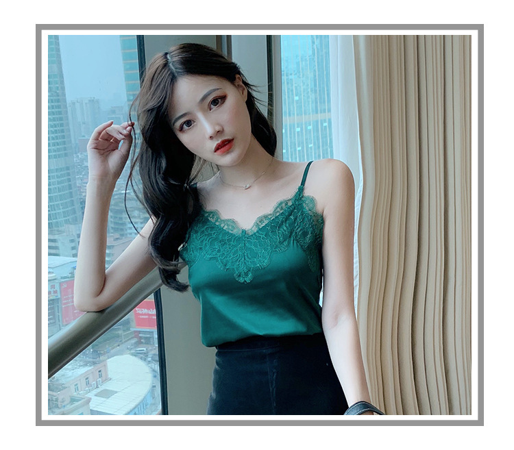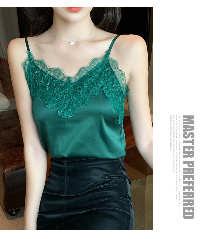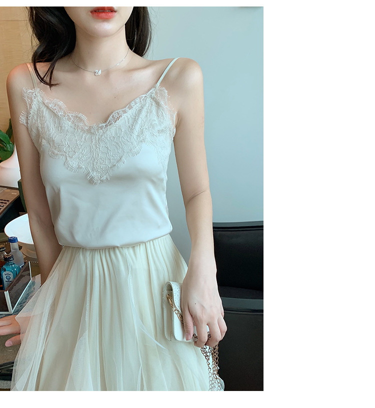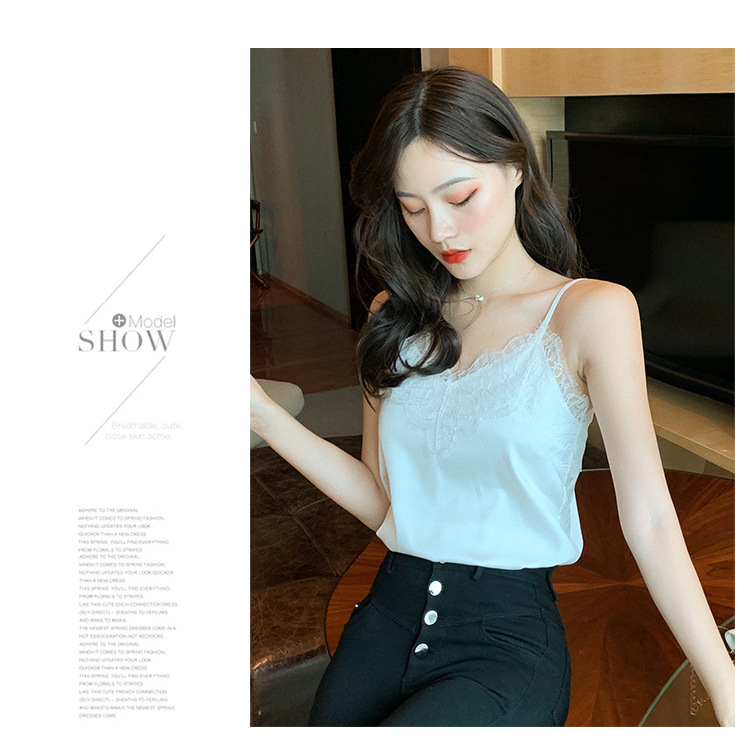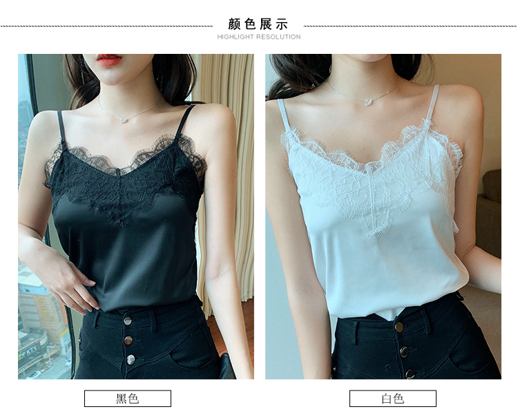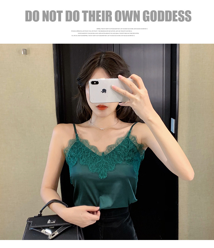 속눈썹 캐미솔 여성의 2020 여름 세트 내부 착용 아름다운 백 베이스 외부 착용 실크 새틴 탑 얇은스토어 가기