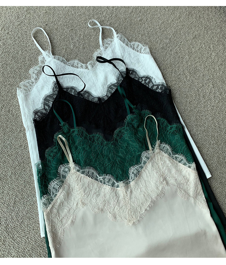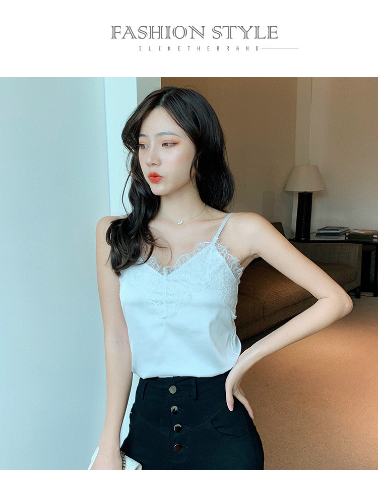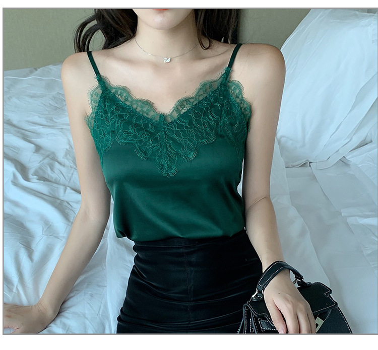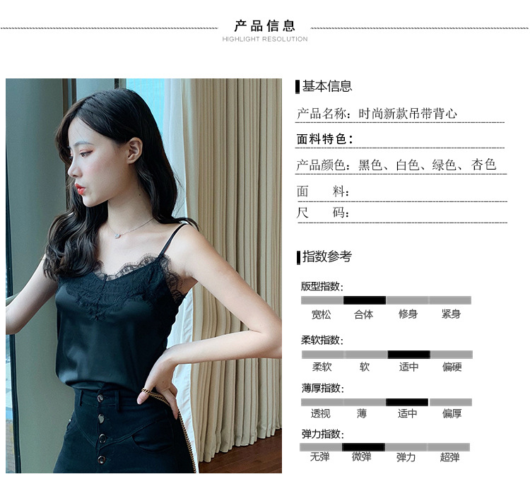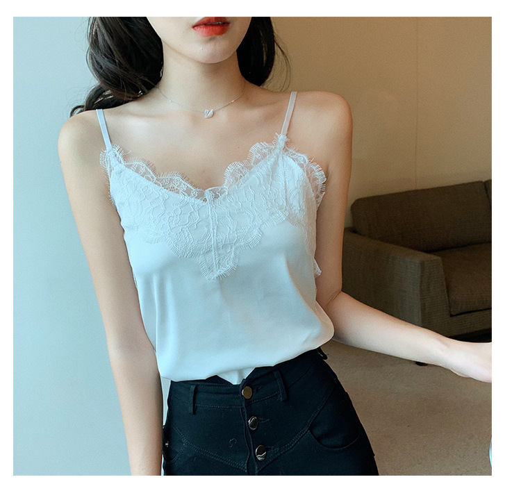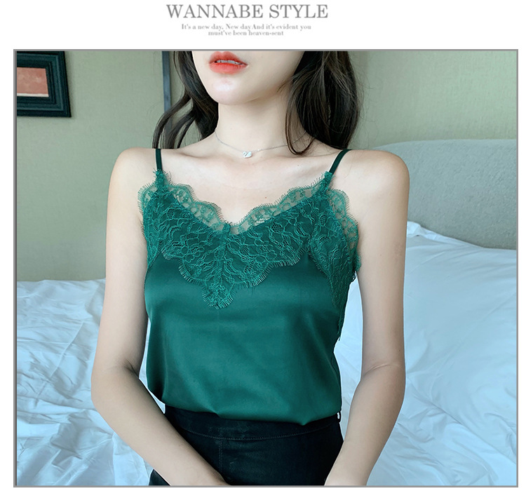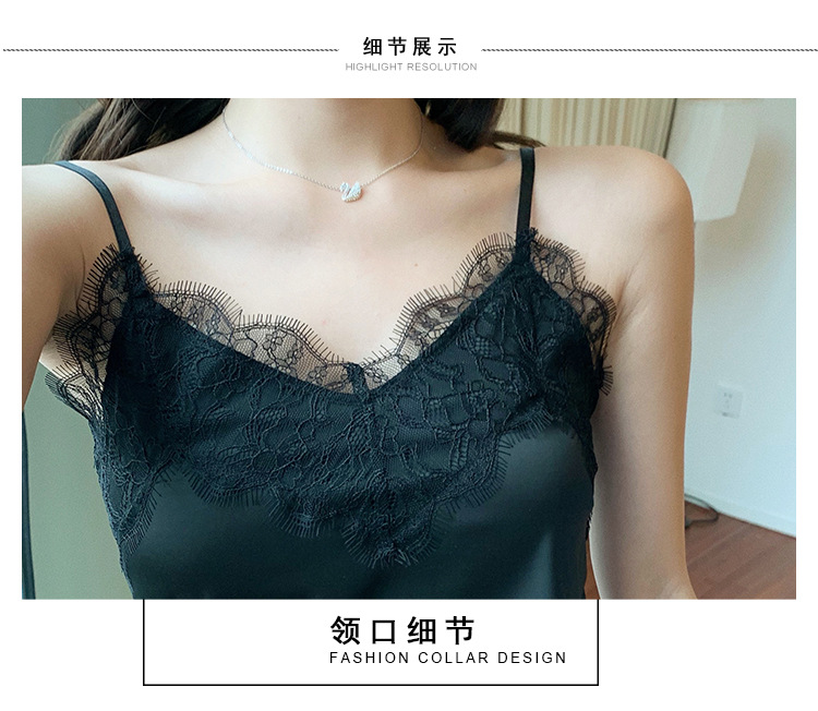 속눈썹 캐미솔 여성의 2020 여름 세트 내부 착용 아름다운 백 베이스 외부 착용 실크 새틴 탑 얇은스토어 가기
