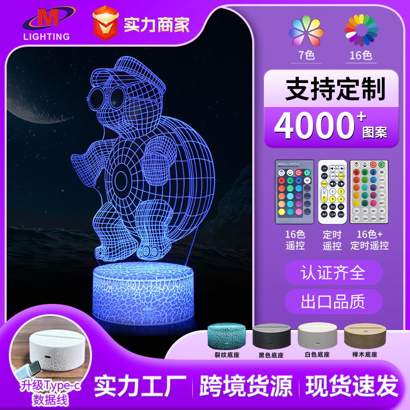 국경 간 전용 거북이 시리즈 3D 야간 조명 주도 창조적 인 시각적 장식 빛 참신 거실 램프 선물 램프스토어 가기