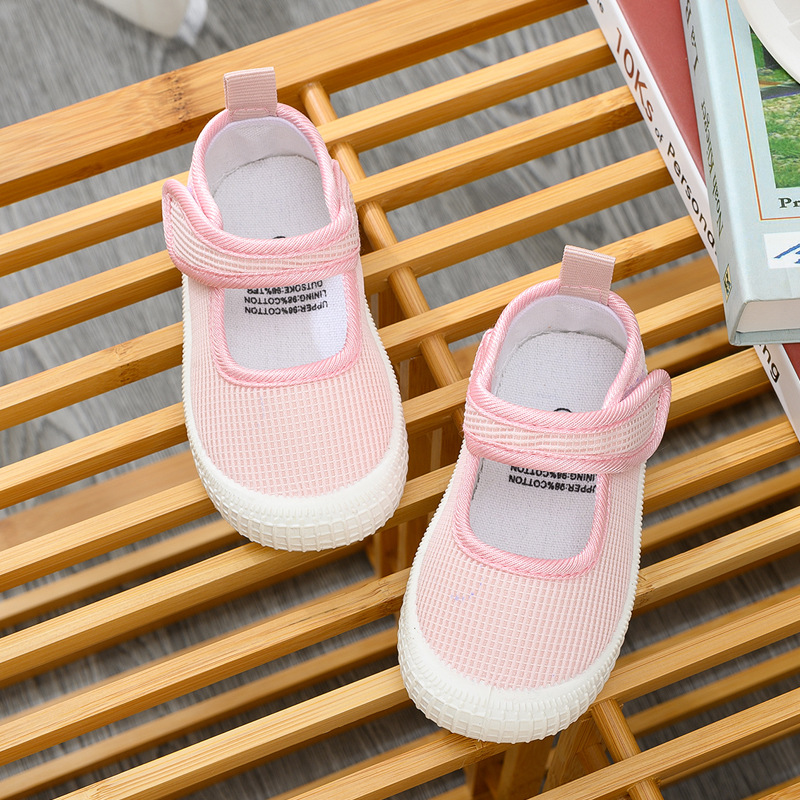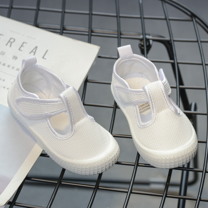 Nanlu 유치원 실내 흰색 신발 소년 블랙 소녀 핑크 사각 입 더블 메쉬 신발 어린이를위한 통기성 벨크로스토어 가기