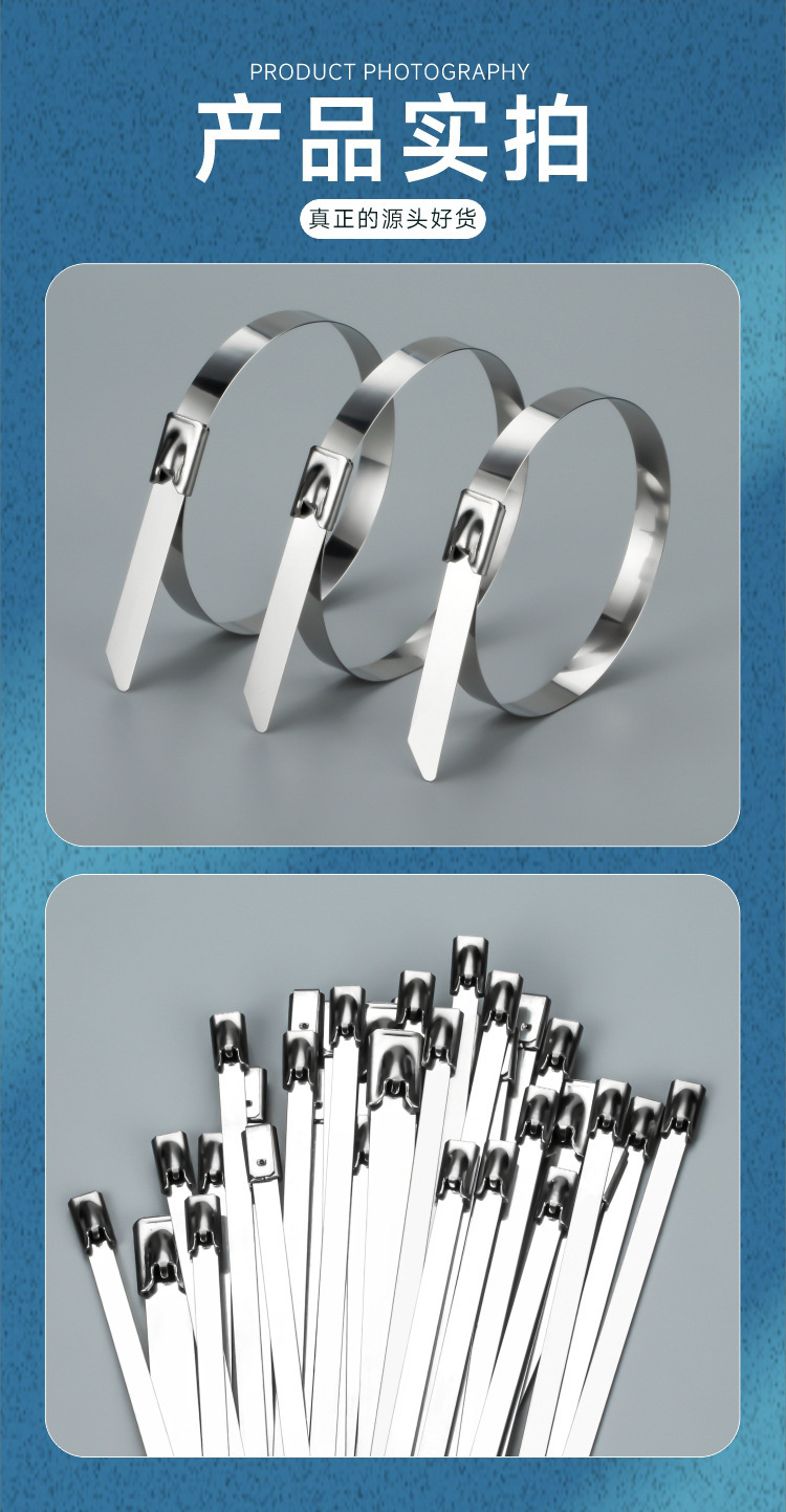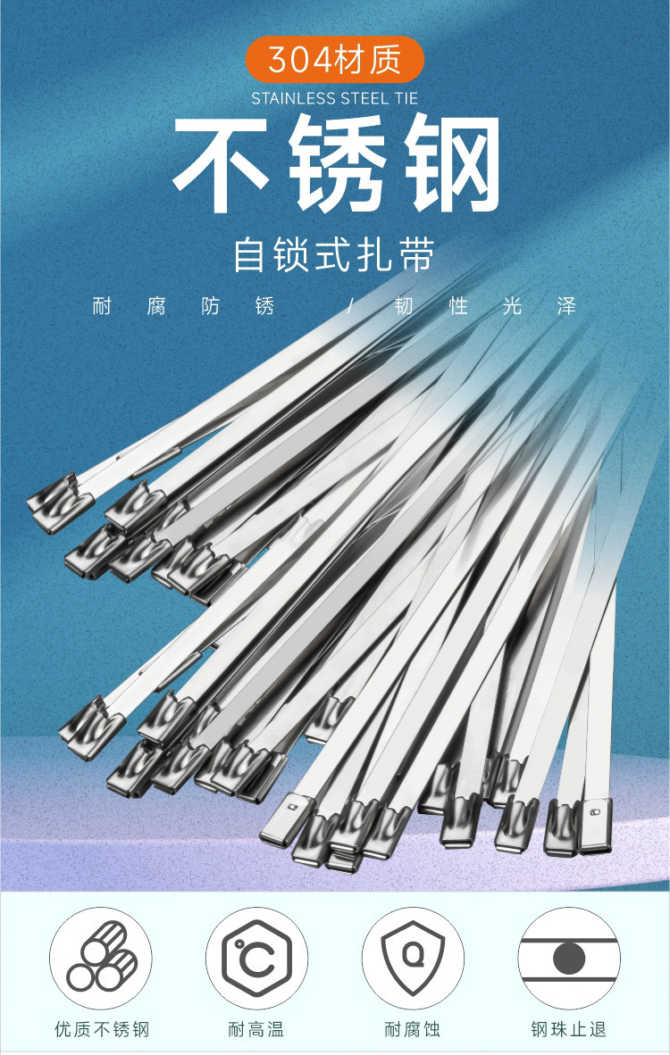 304 스테인레스 스틸 케이블 타이 4.6*400 자동 잠금 고온 저항 금속 케이블 타이 버클 케이블 타이 제조 업체 재고스토어 가기