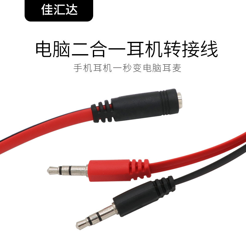 헤드셋 One-2 오디오 라인 컴퓨터 헤드셋 투인원 어댑터 빨강 및 검정 플랫 라인 어댑터 오디오 라인 3.5스토어 가기