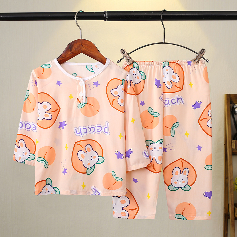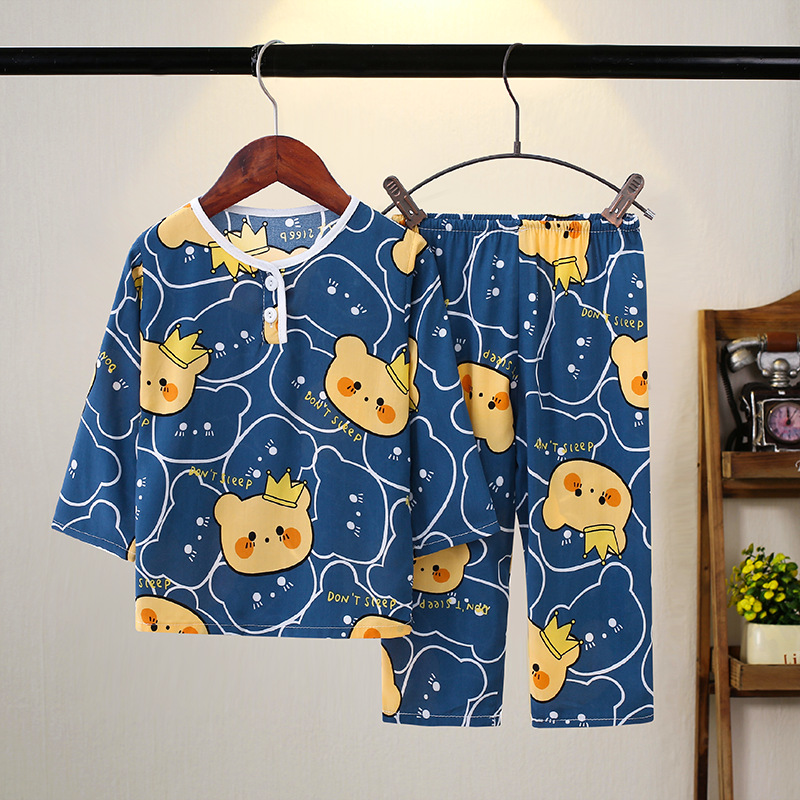긴 소매 바지 면 실크 여름 어린이 소년 얇은 세트 여름 어린이 면 실크 잠옷 소년과 소녀 아기스토어 가기