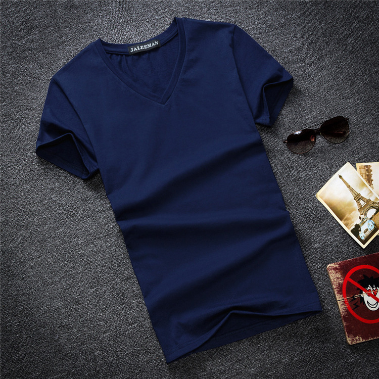 대외 무역 도매 재고 남성용 세련된 면화 남성용 반팔 티셔츠 도매 2020 여름 새로운 단색 V 넥스토어 가기