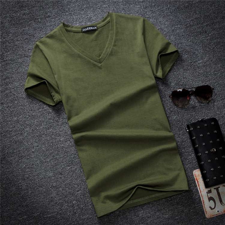 대외 무역 도매 재고 남성용 세련된 면화 남성용 반팔 티셔츠 도매 2020 여름 새로운 단색 V 넥