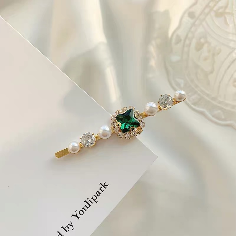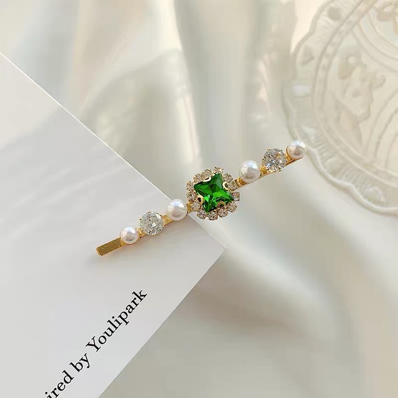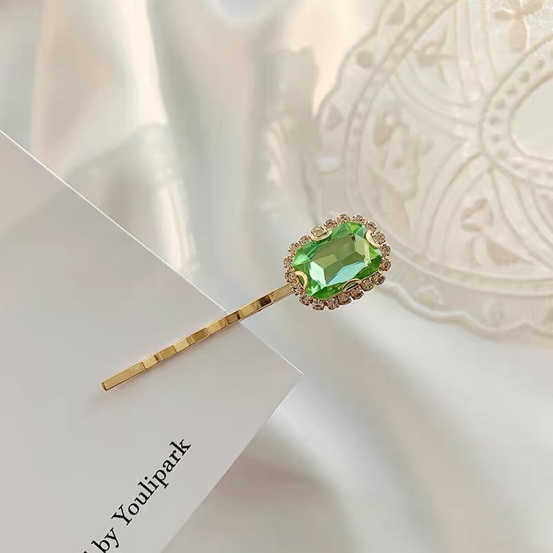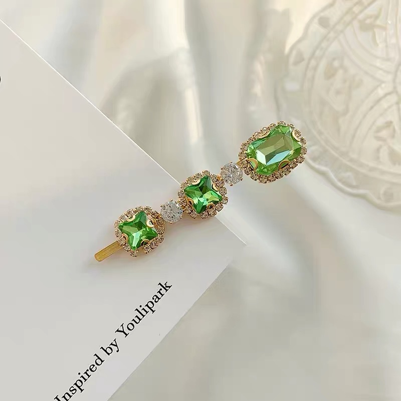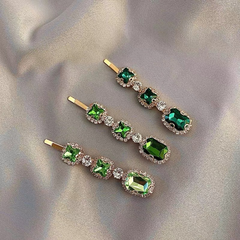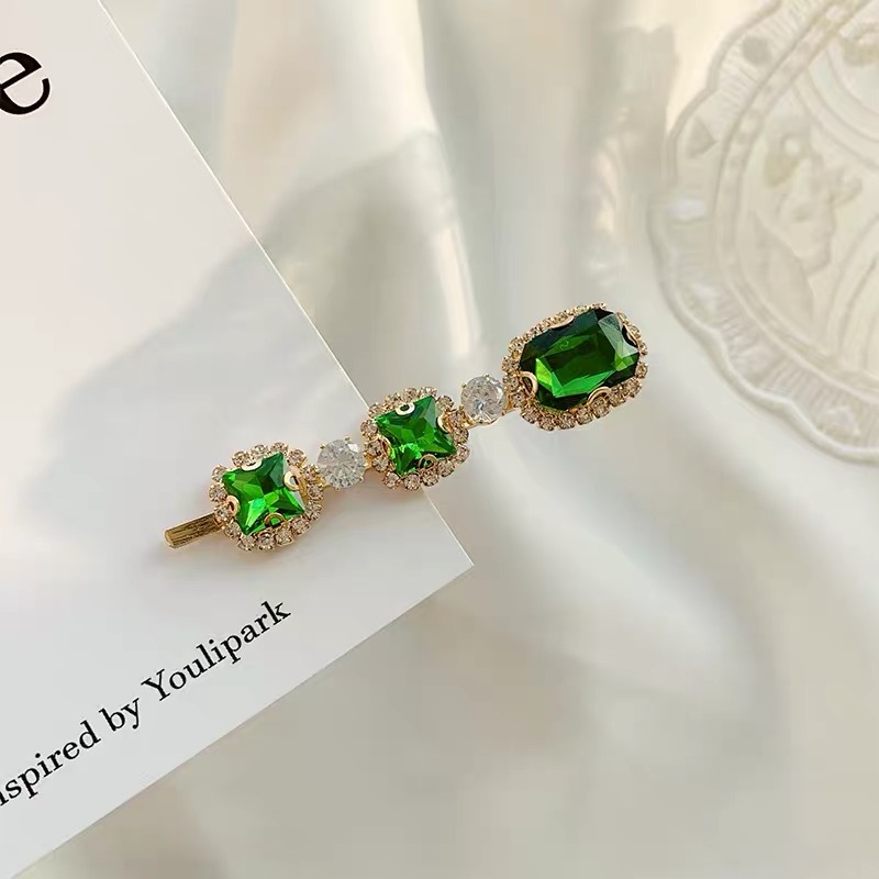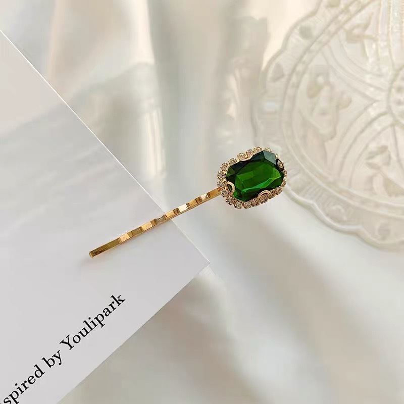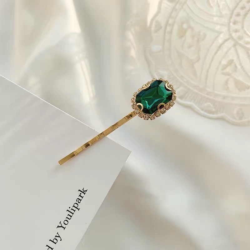 에메랄드 라인 석 레트로 틈새 머리핀 여성용 모든 경기 우아한 한 단어 머리핀 앞머리 작고 절묘한 클립 헤어 액세서리