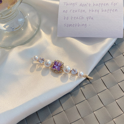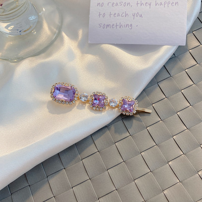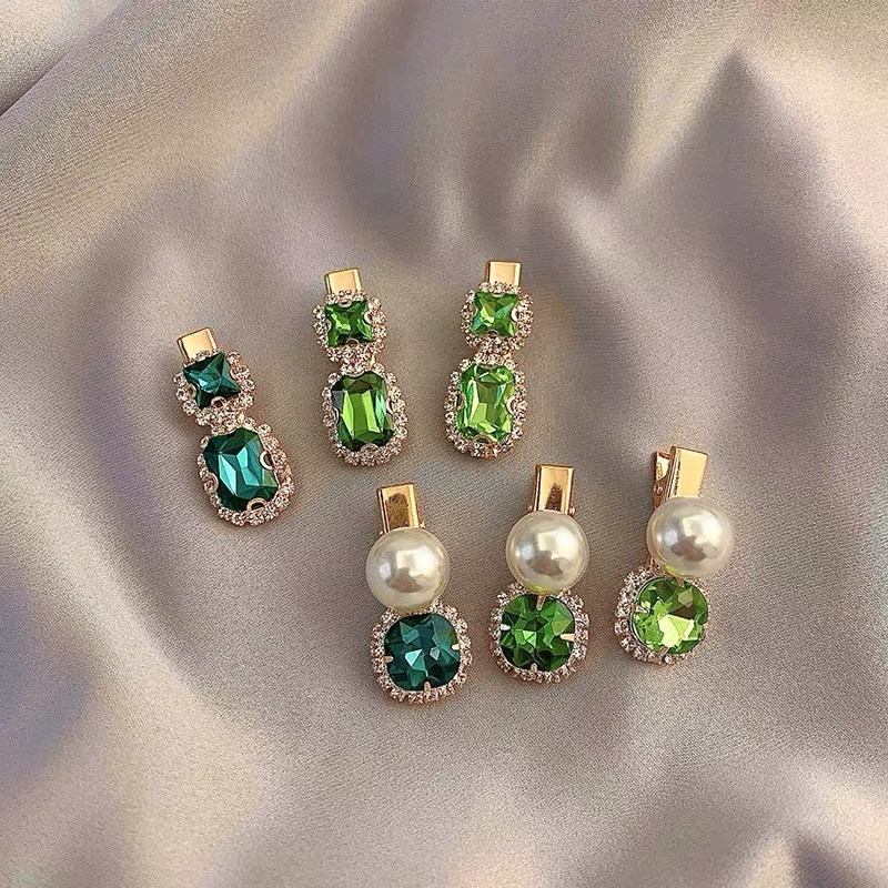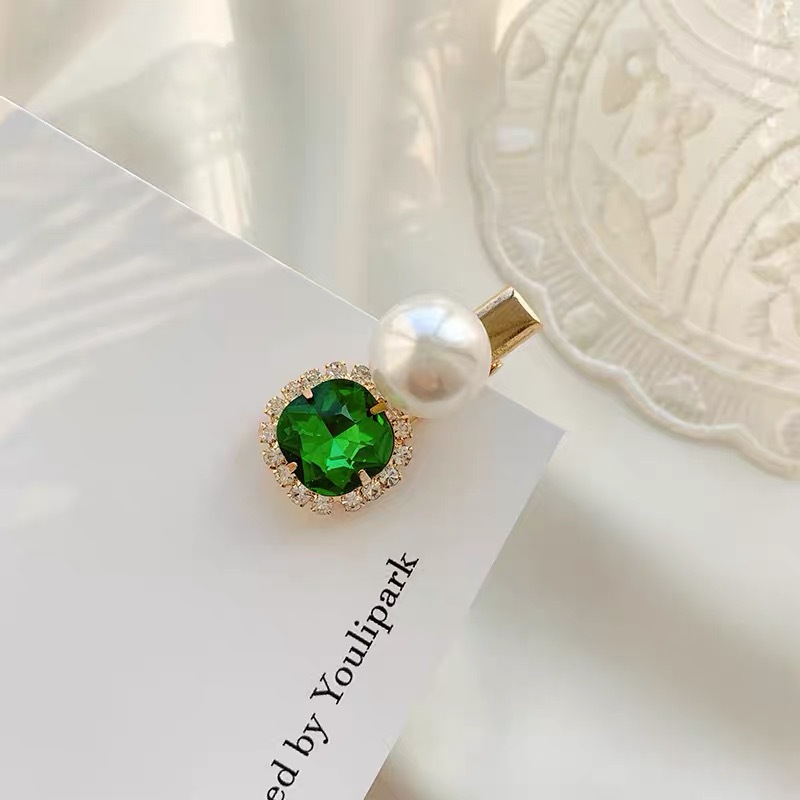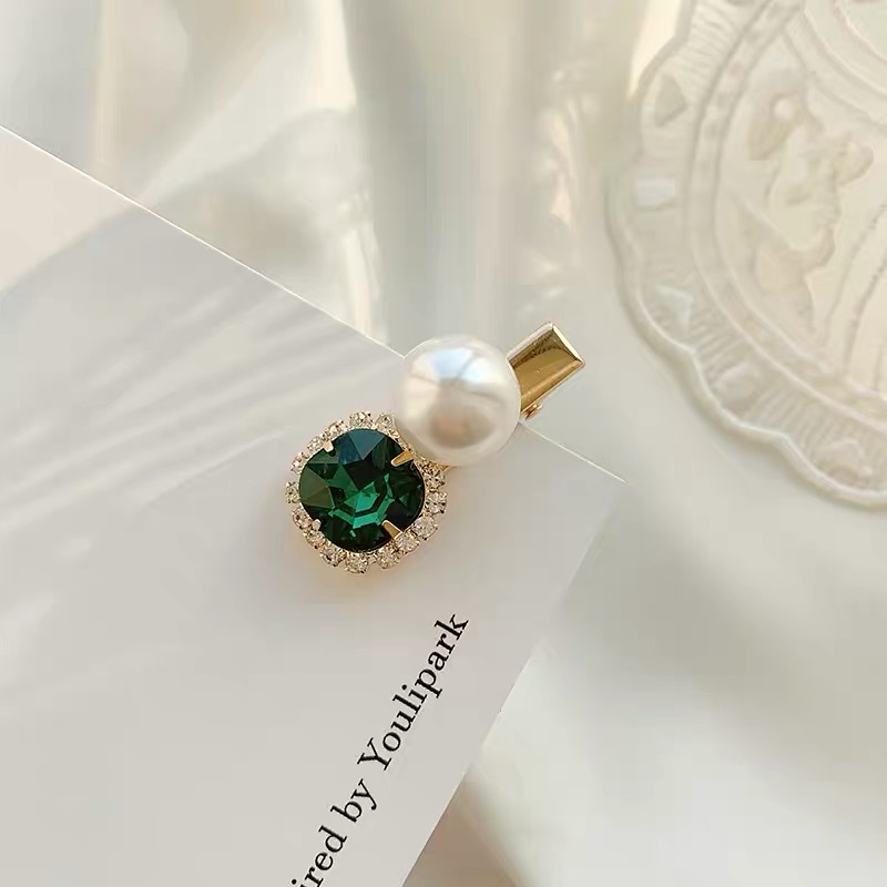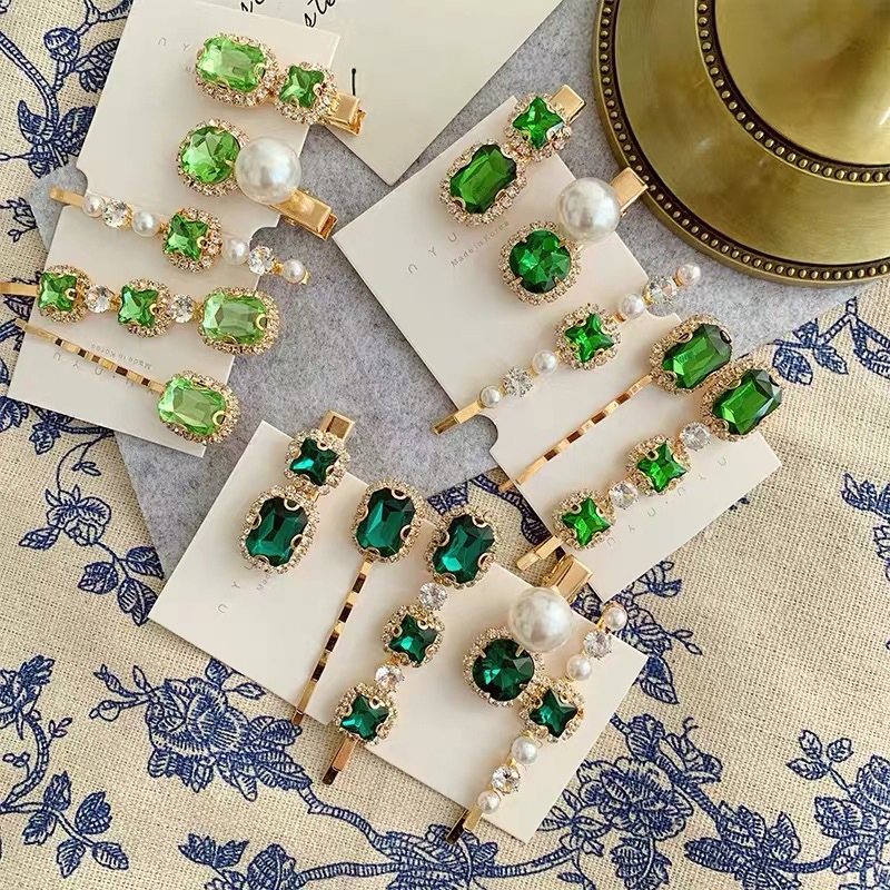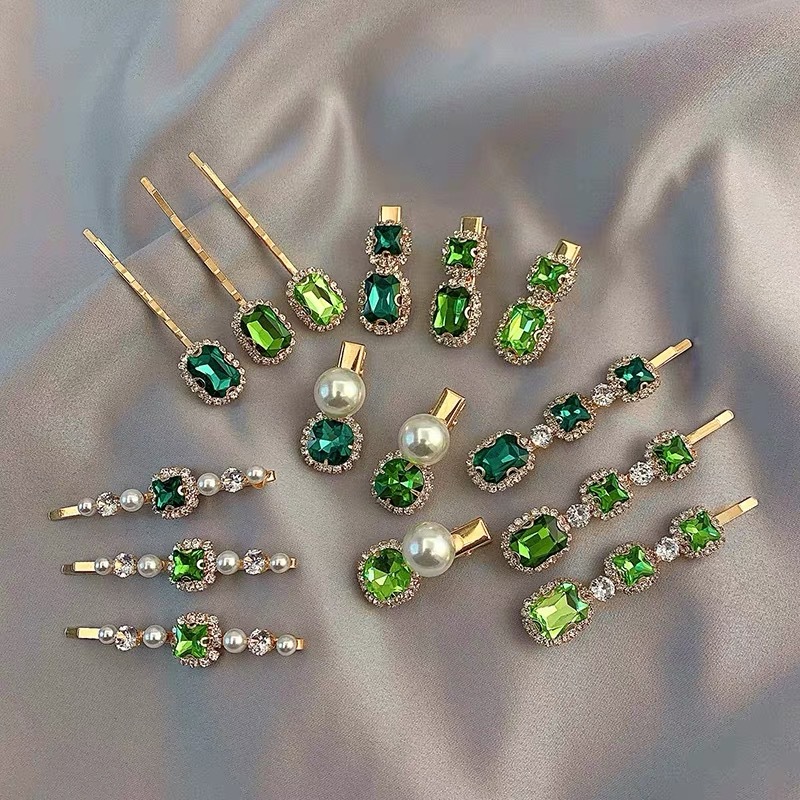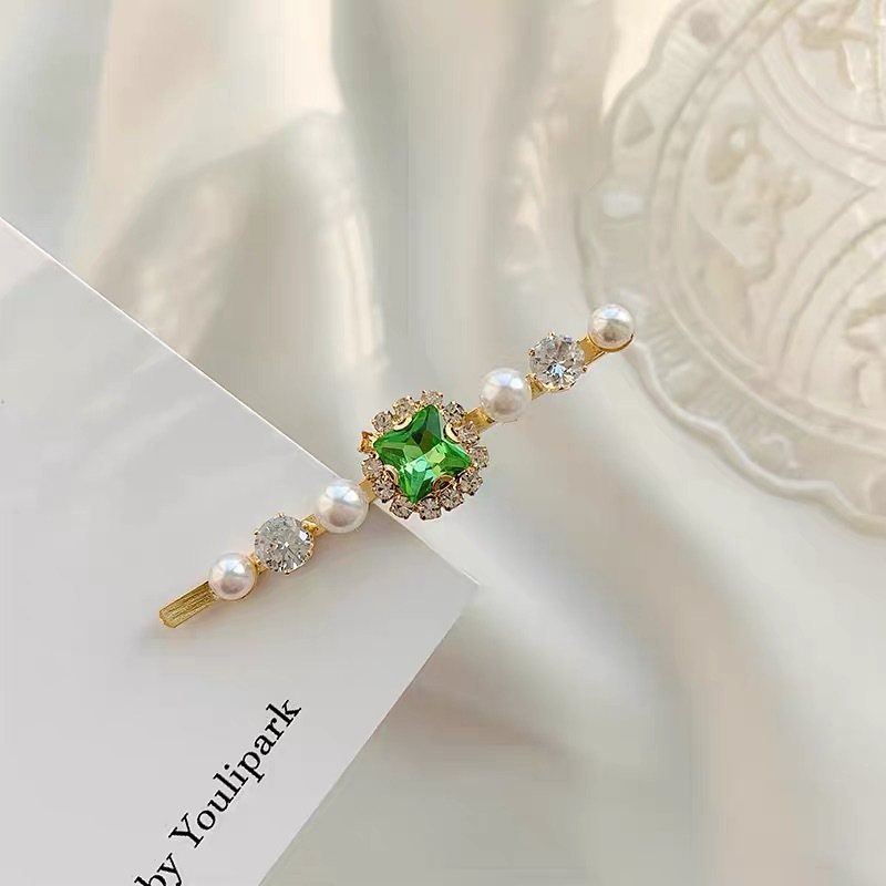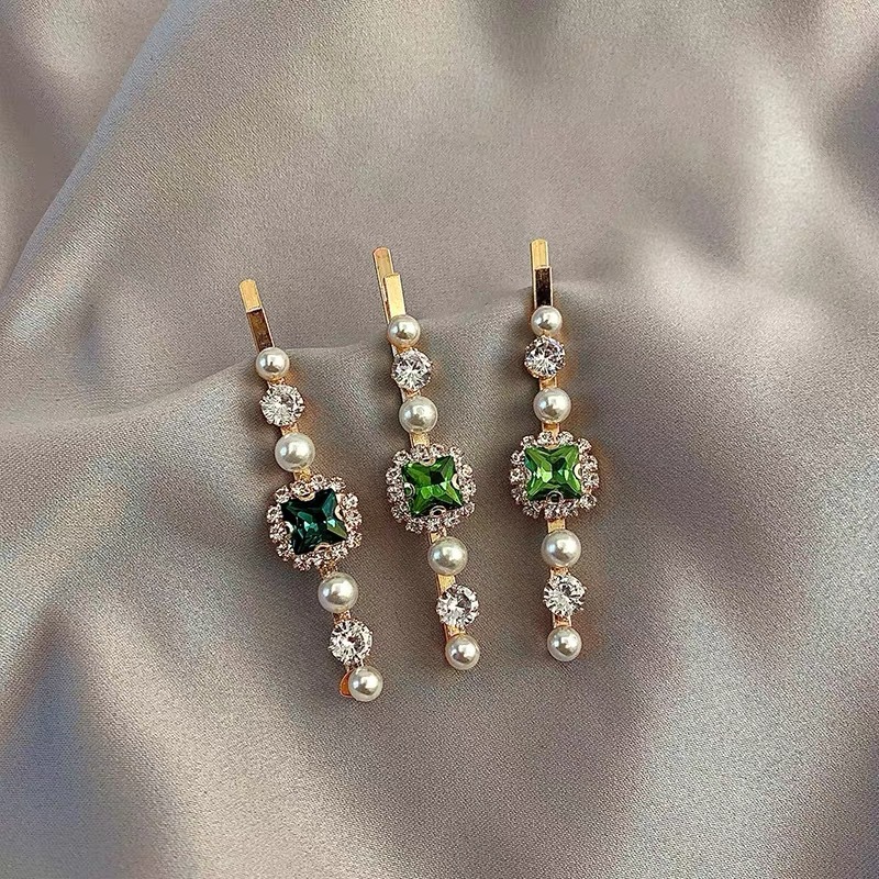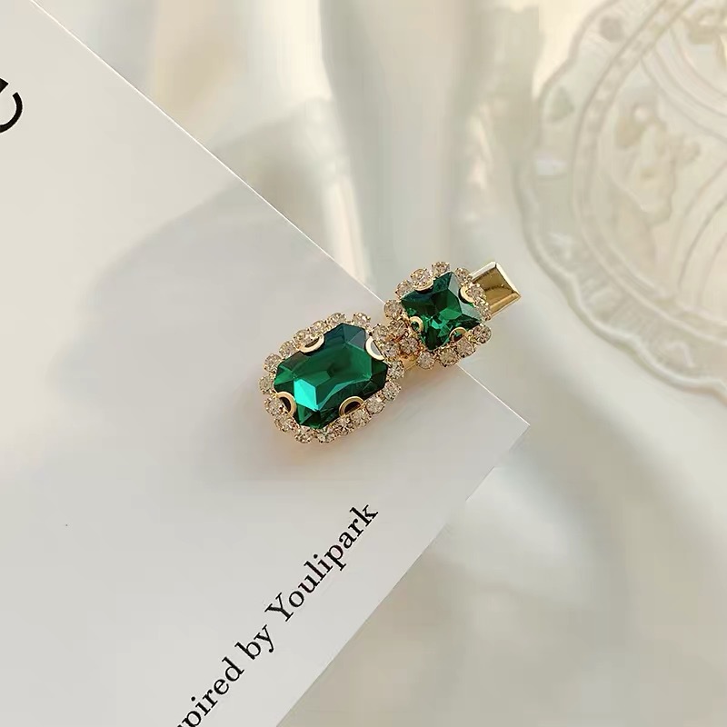 에메랄드 라인 석 레트로 틈새 머리핀 여성용 모든 경기 우아한 한 단어 머리핀 앞머리 작고 절묘한 클립 헤어 액세서리