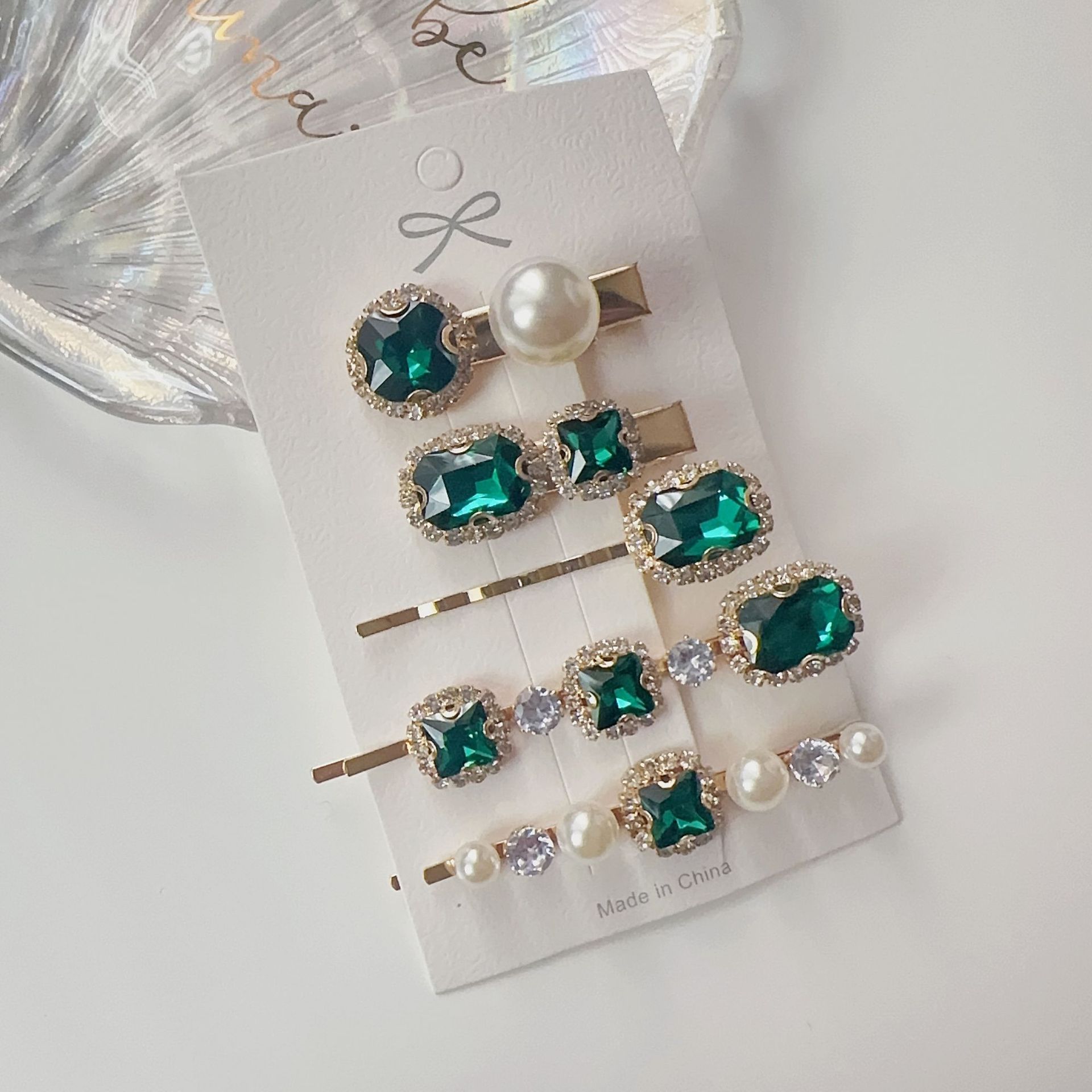 에메랄드 라인 석 레트로 틈새 머리핀 여성용 모든 경기 우아한 한 단어 머리핀 앞머리 작고 절묘한 클립 헤어 액세서리스토어 가기