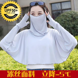防晒披肩夏季防晒衣女新款遮阳服2022冰丝薄款连帽子开车防紫外线