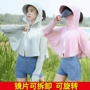 防晒衣女防紫外线带帽遮脸冰感冰丝面罩一体遮阳太阳帽短款防晒服