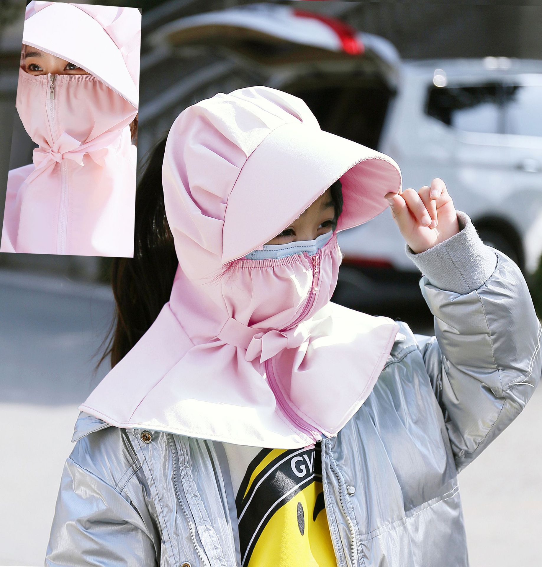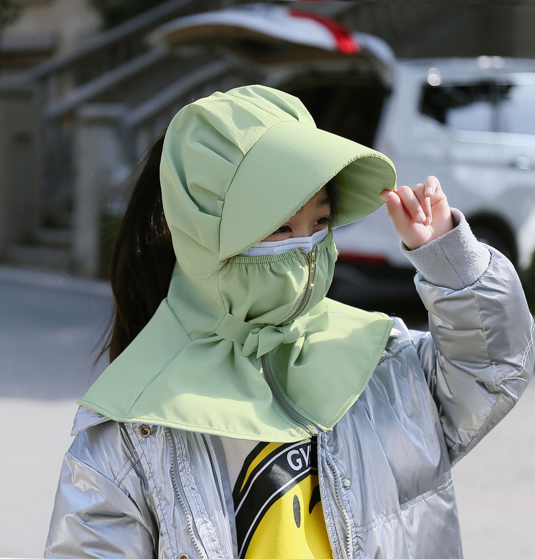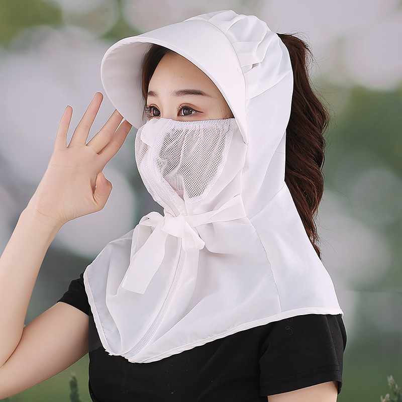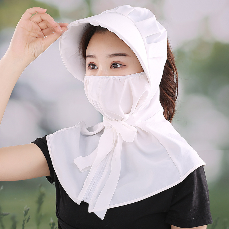 遮阳防晒女防蚊夏季遮脸采茶骑行大沿冰丝面罩口罩太阳帽子紫外线
