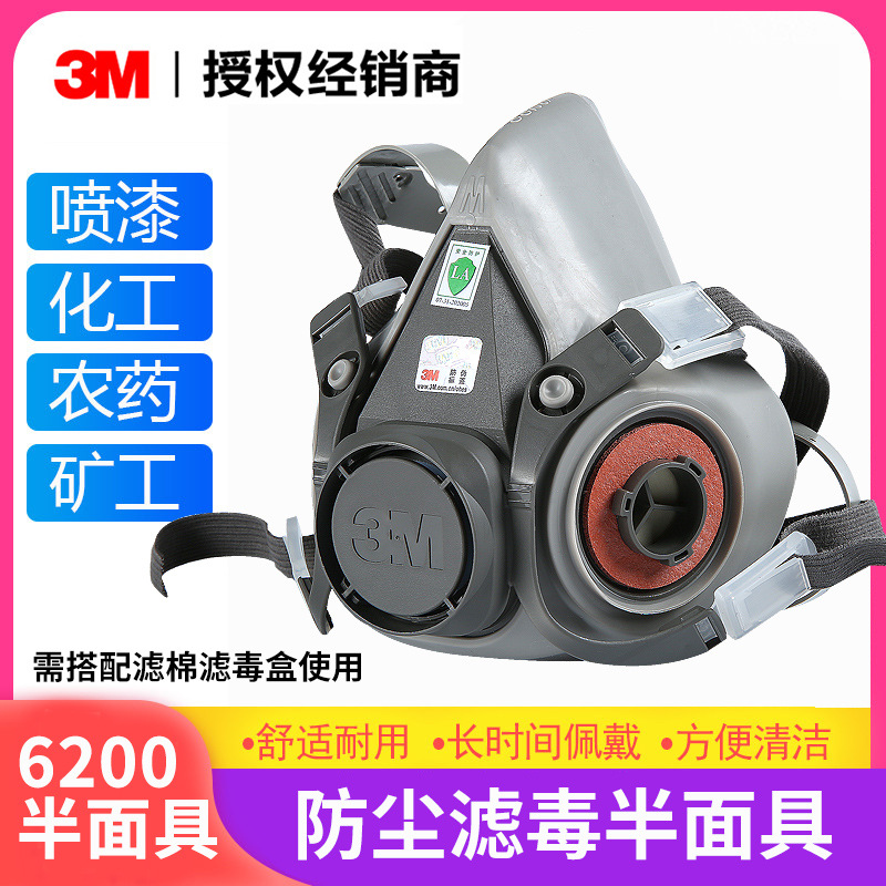 정품 3M6200 반면 마스크, 도장 및 포름알데히드 방지 페인트 마스크, 농약 살포 및 화학 산업용 고무 재질