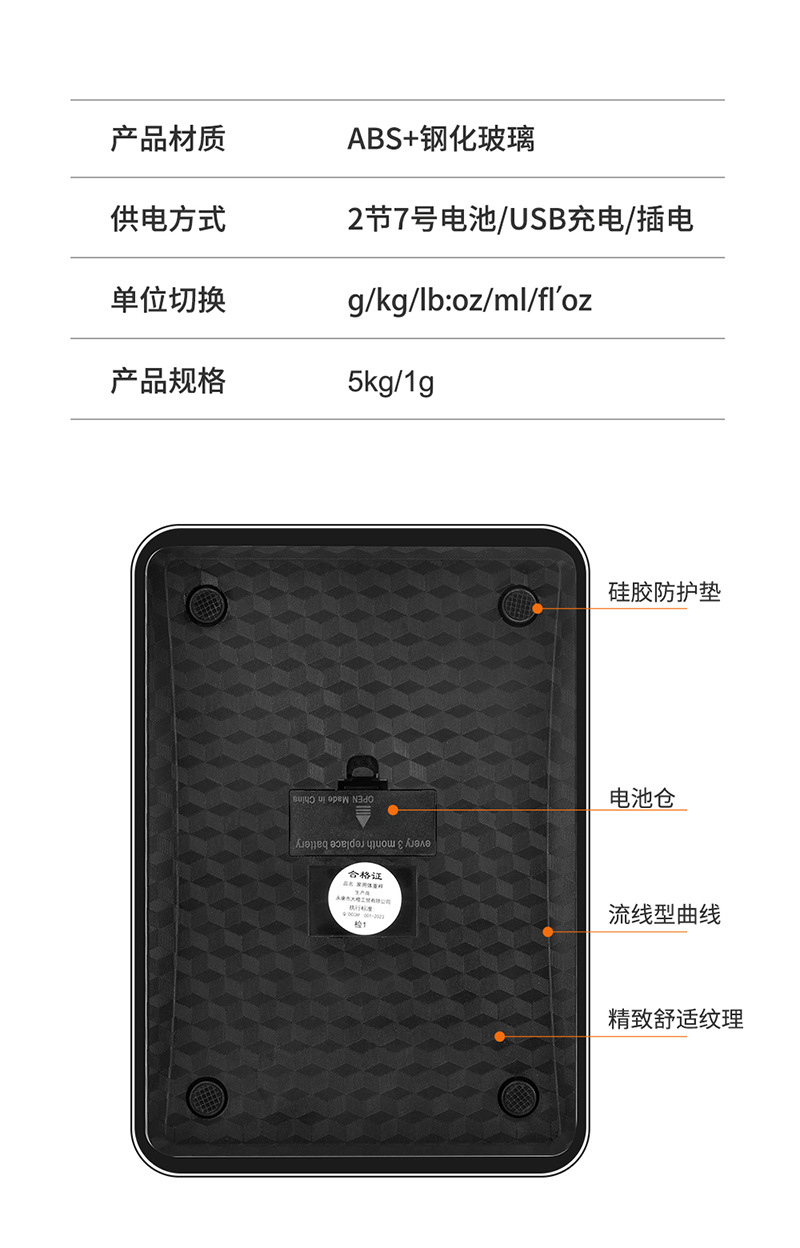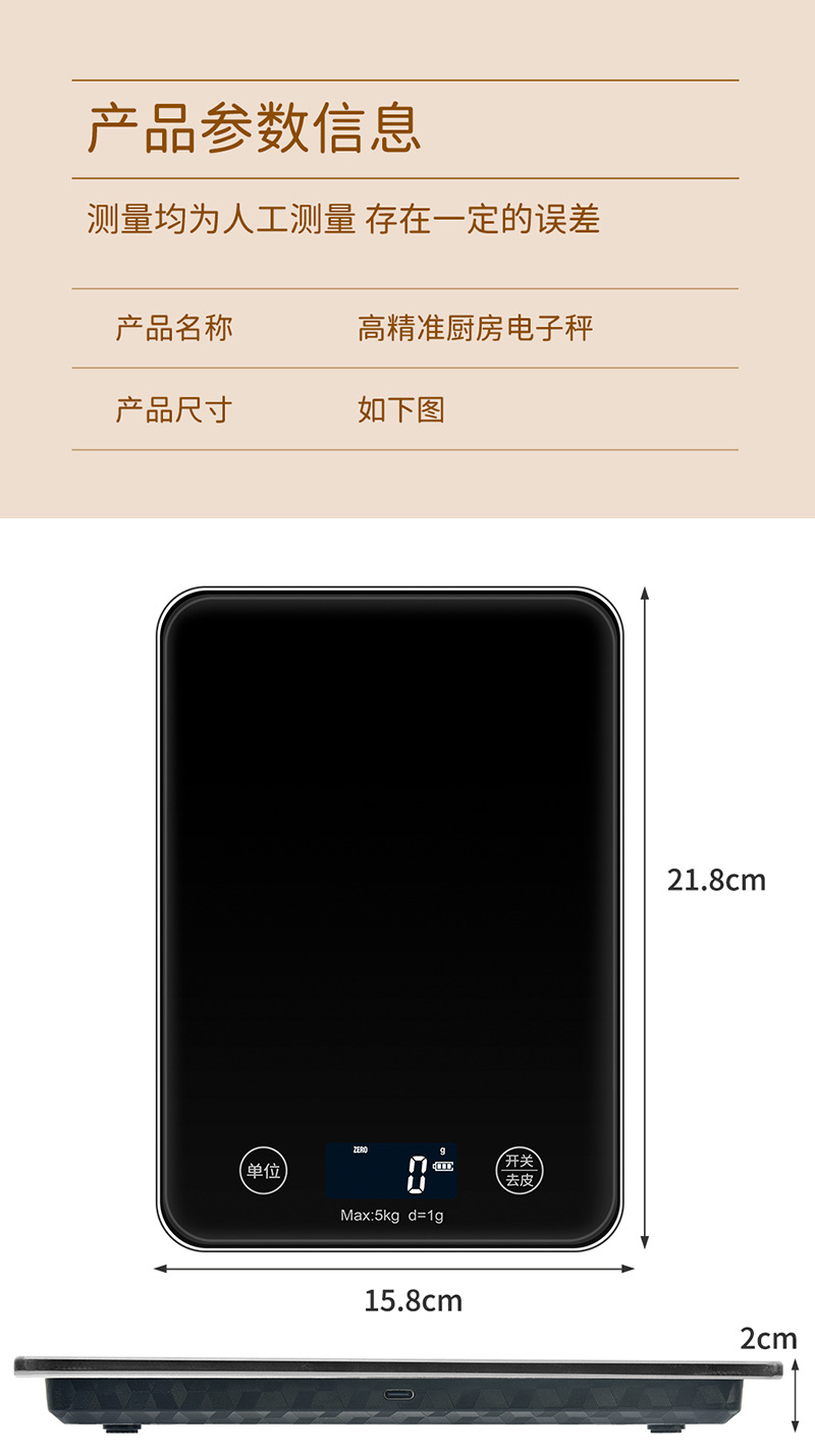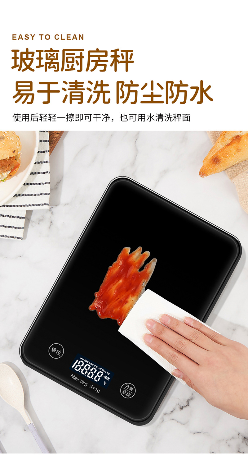 주방용 충전식 유리 주방 저울 식품 계량 5KG 전자 저울 주방 전용 전자 저울