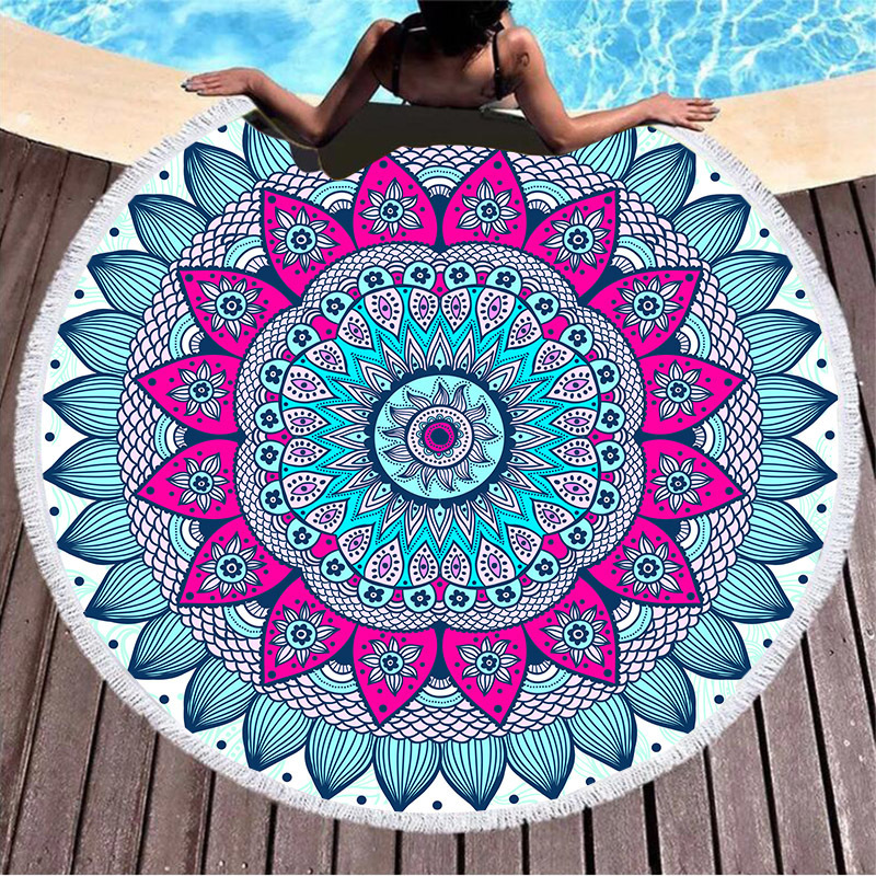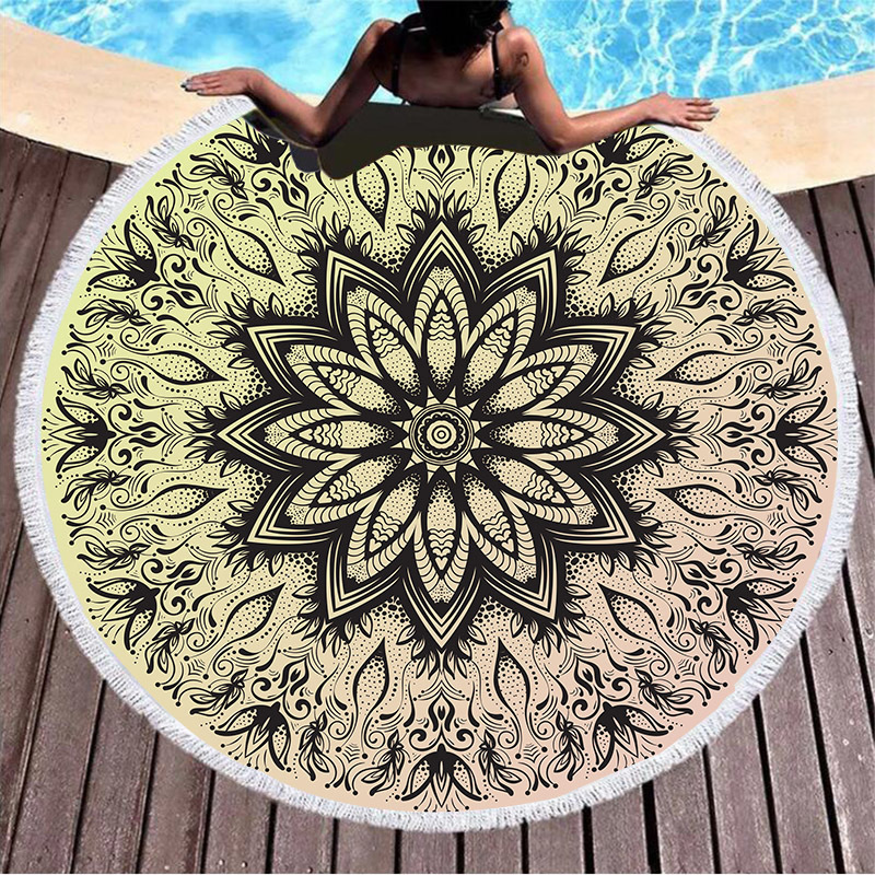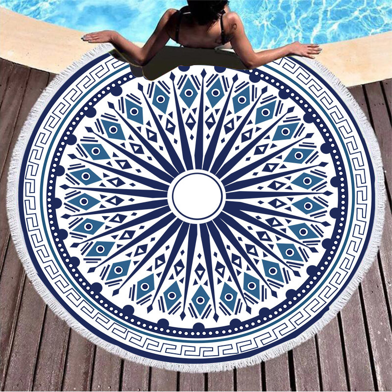 공장 직접 구미 바람 극세사 비치 숄 열전사 술 원형 비치 타월