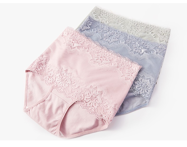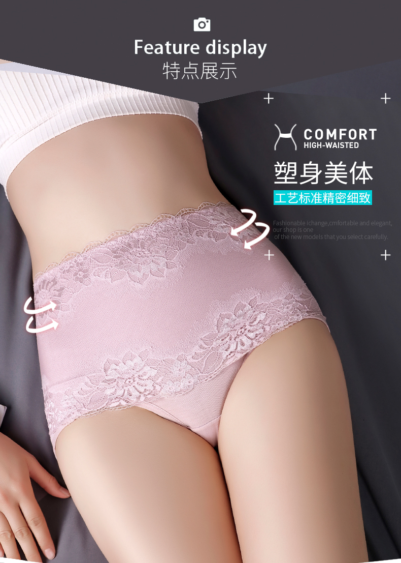 Longsha 여자의 하이 웨이스트 속옷 면 배꼽 착색 엉덩이 리프팅 플러스 사이즈 통통녀 레이스 섹시한 삼각형 반바지 머리 정품스토어 가기