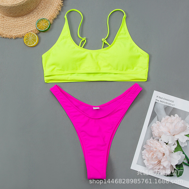 아마존 베스트셀러 비키니 2025 유럽과 미국의 대외 무역 새로운 여성 스플릿 솔리드 컬러 수영복 섹시한 패션 수영복스토어 가기