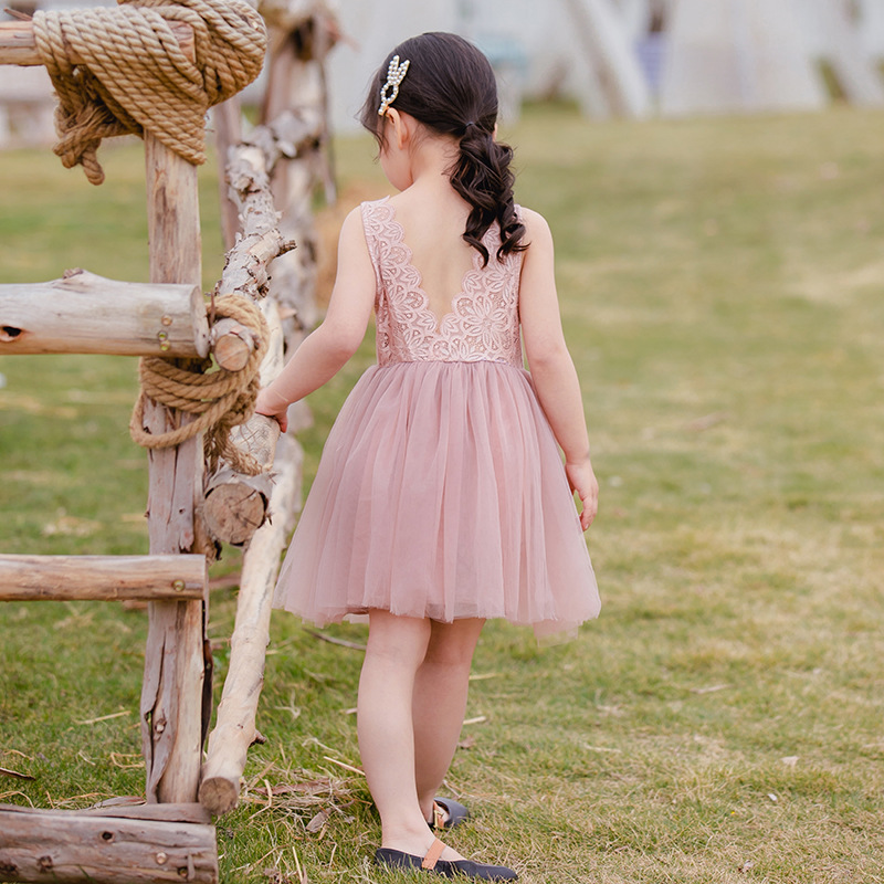 2020 아동복 여름 새로운 여아 원피스 등이없는 레이스 스커트 여아 베일 스커트 폰툰 원피스 공주 스커트